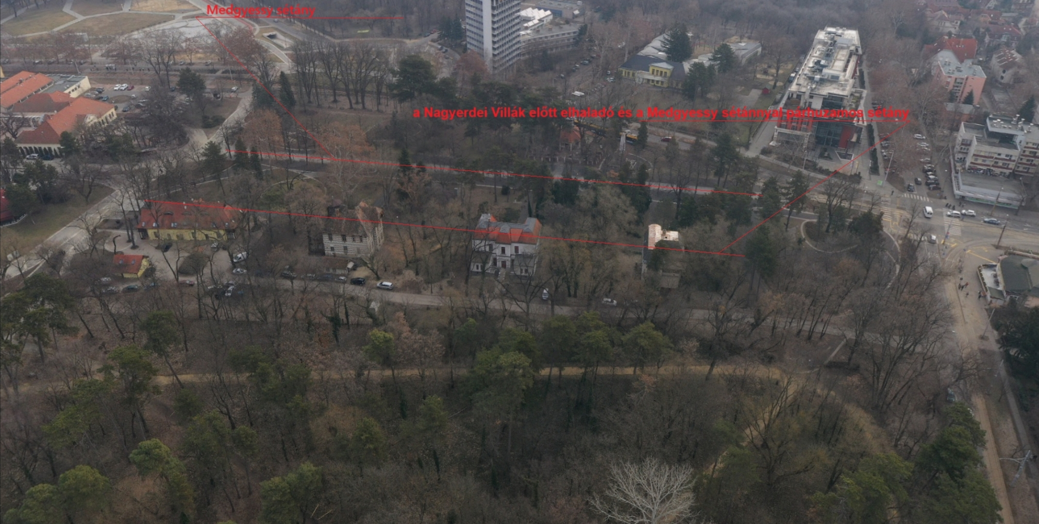 A Nagyerdei Villák előtt (nem mögöttük!!) elhaladó sétányon (ami párhuzamos a Medgyessy sétánnyal) a Nagyerdei körút irányából elindulva a Krúdy étterem irányába az első és második Villa között megtalálható lámpa oszlop világítása ki-bekapcsol, a 2. Villa előtt megtalálható lámpa oszlop világításának a fénye erősen csökkent, mert az égő valószínűleg elhasználódott, túl régi már.