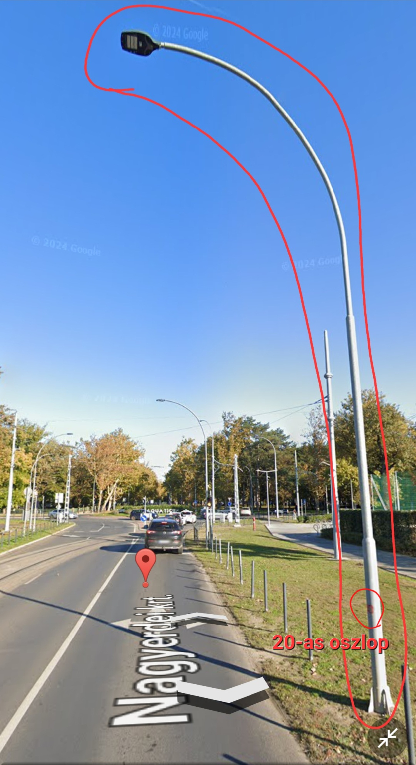 A Nagyerdei körúton a Klinikák elnevezésű villamosmegállóhellyel kb. szemben található 20-as számozású oszlop világításának a fényereje erősen lecsökkent, mert a lámpafej valószínűleg meghibásodott.