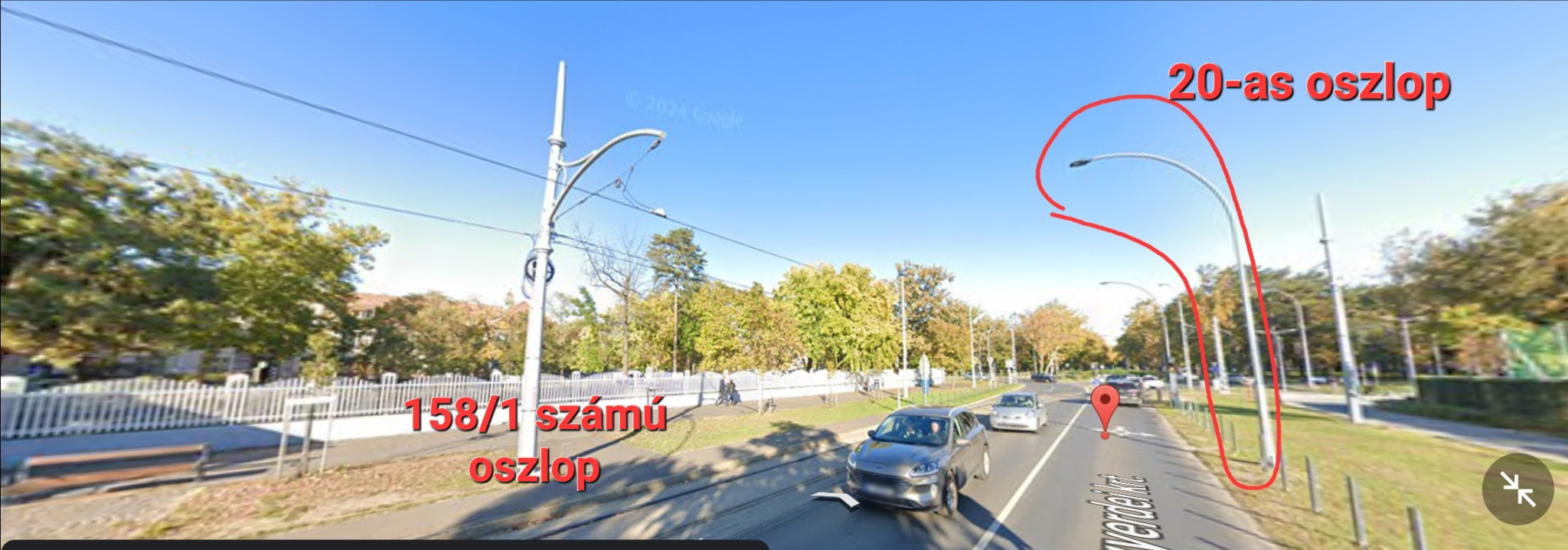 Ezzel a 20-as számozású oszloppal kb. szemben található a 158/1-es számozású oszlop.