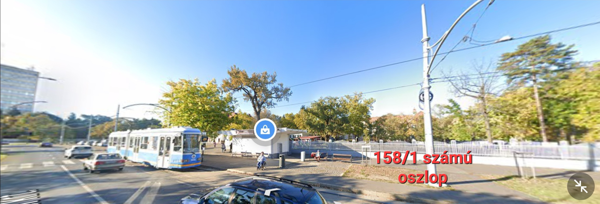Ez a 158/1-es számozású oszlop a Klinikák elnevezésű villamosmegállóhely mellett található.