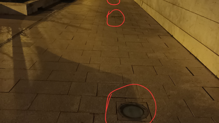 előtt megtalálható összesen 8db talajba süllyesztett lámpatest nem világít.