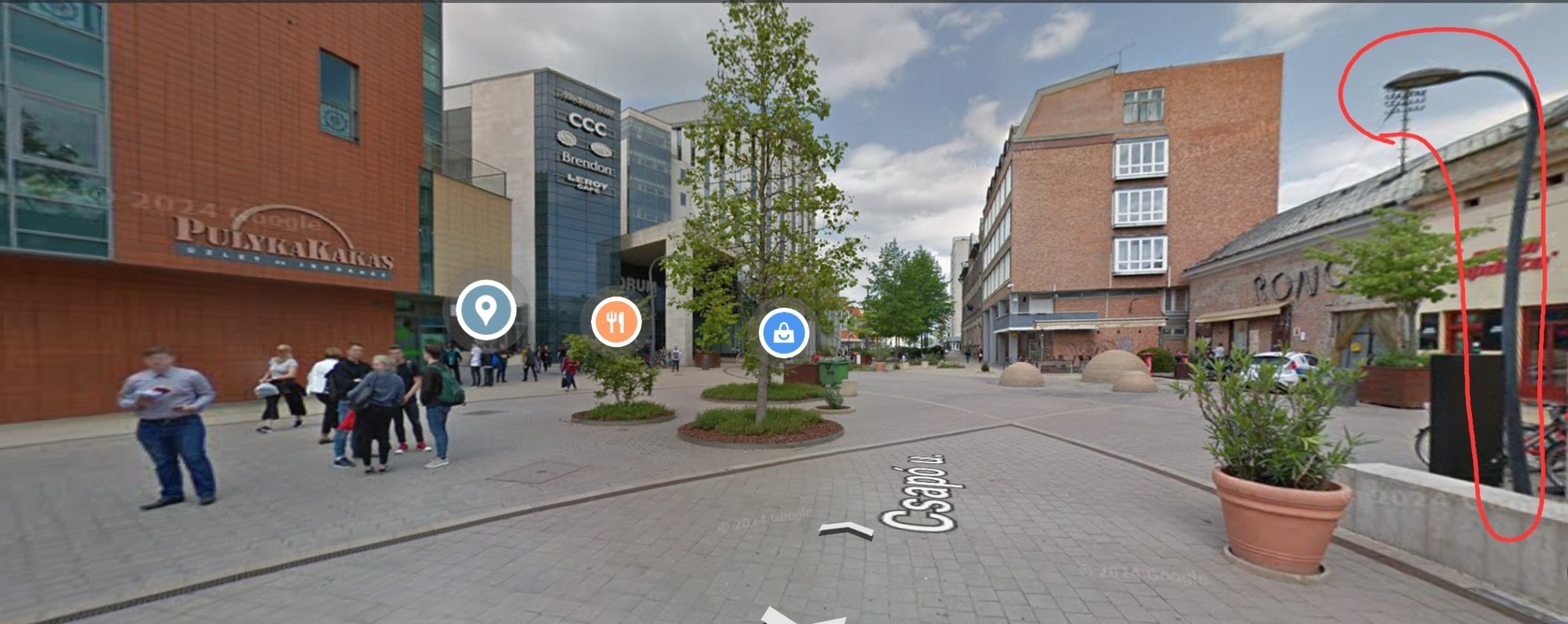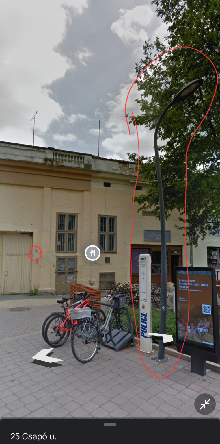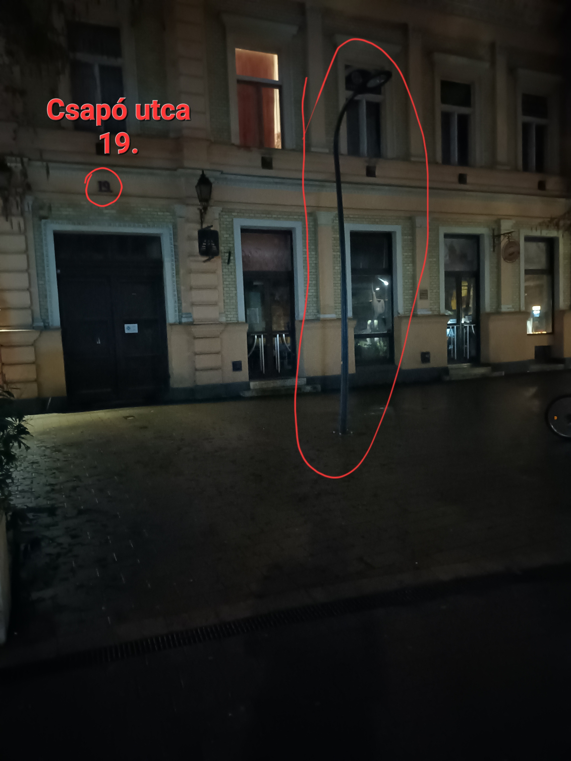 A Csapó utcai sétáló övezetnek a Vár utca és a Rákóczi utca közötti szakaszán az alábbi helyeken 2025.04.03-án nem világítottak a lámpák:
