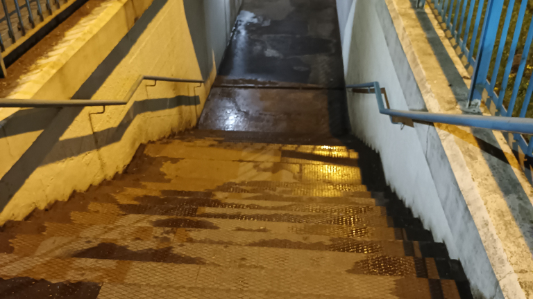 További probléma hogy nagy esőzés után a lépcsőfokokig áll a víz egybefüggően az aluljáróban, emiatt így átjárhatatlan az aluljáró legalább 1 napig!!