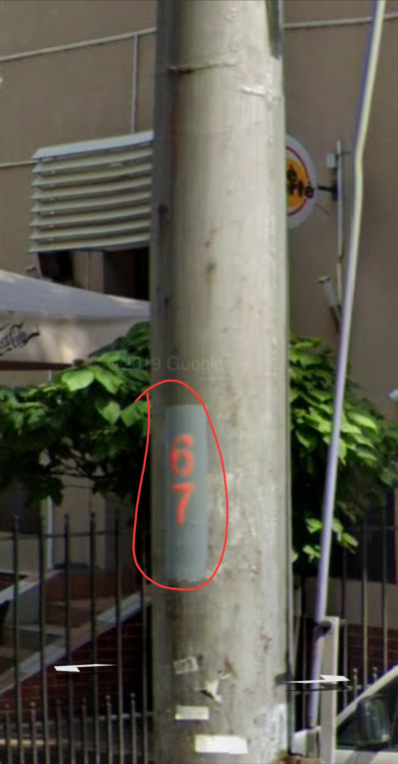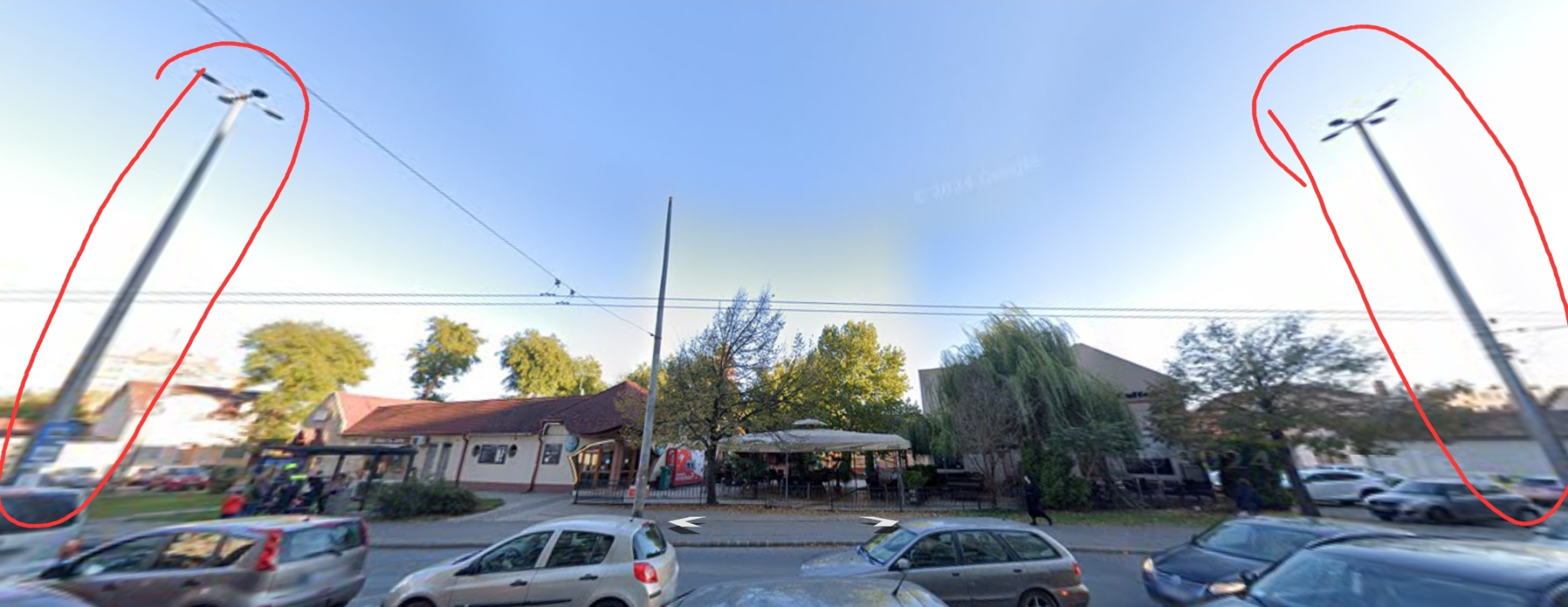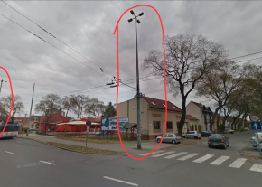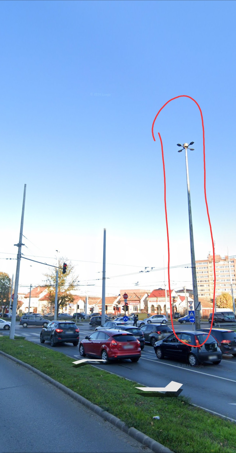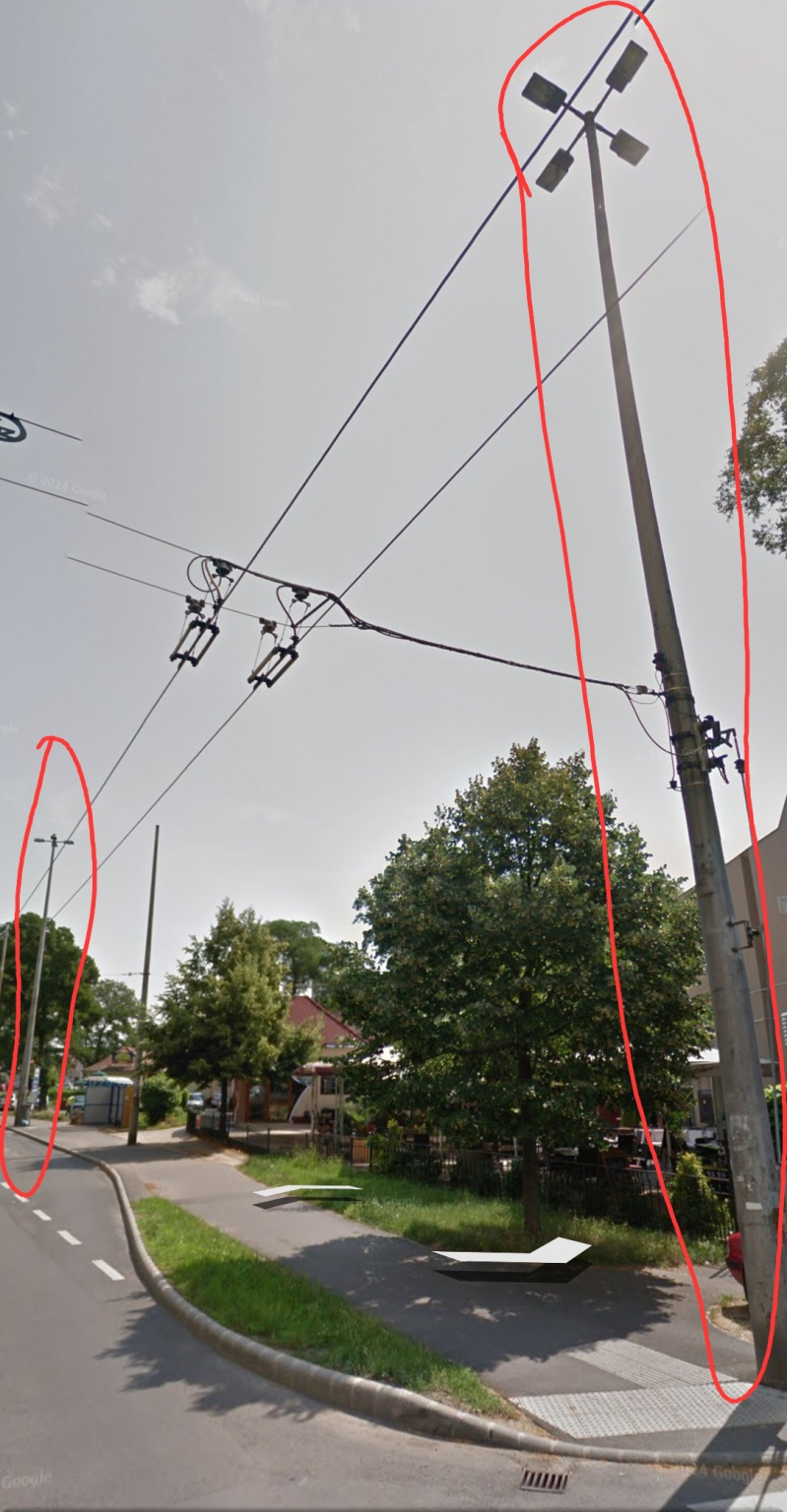 Az első hibás lámpa oszlop száma 67, az utolsó lámpa oszlop száma 376, a második lámpa oszlopon pedig egy "Buszmegálló" Kresz tábla illetve a buszmegálló elnevezését jelző tábla "Bercsényi utca" található és oszlop szám nincs rajta.