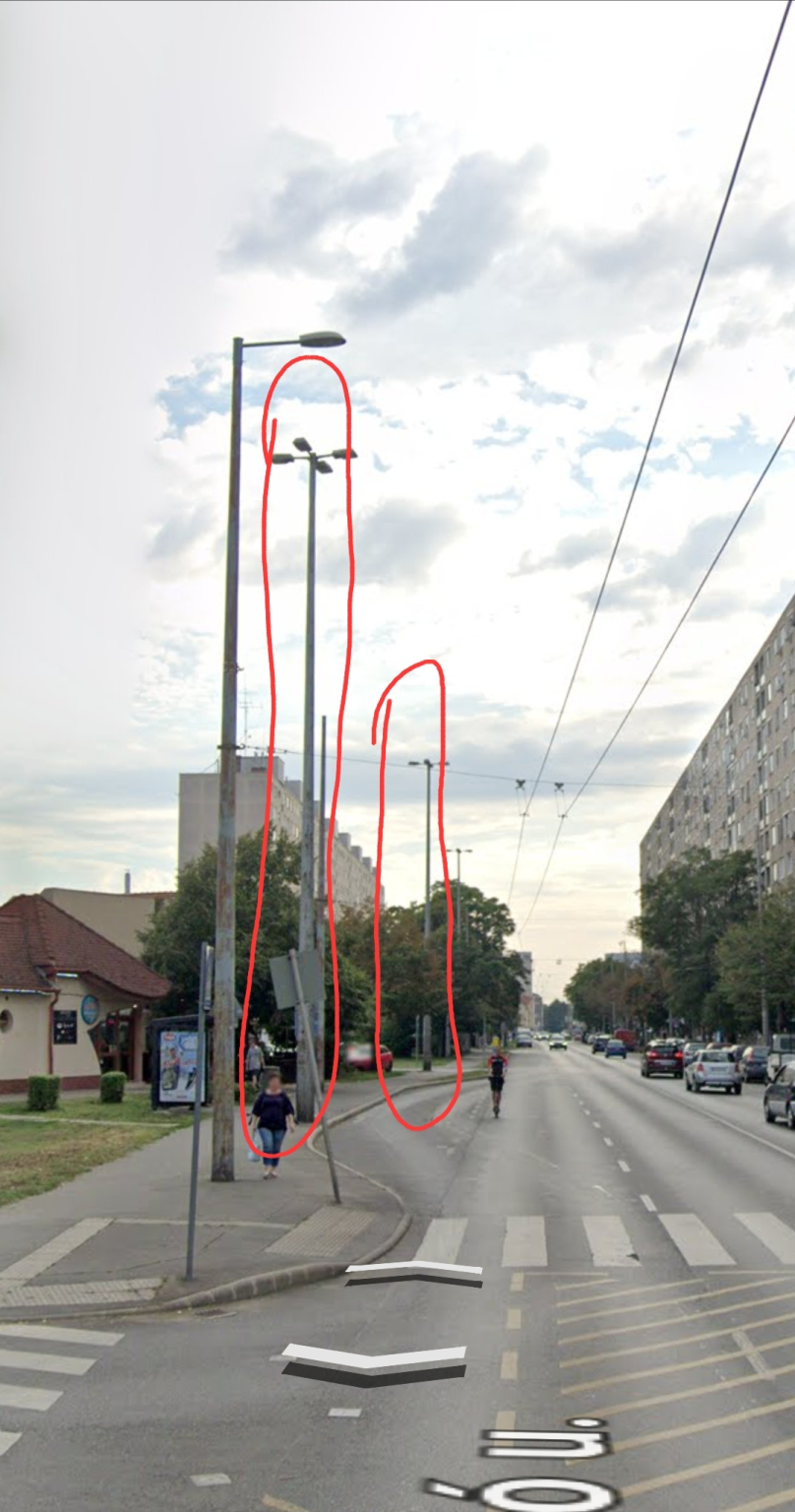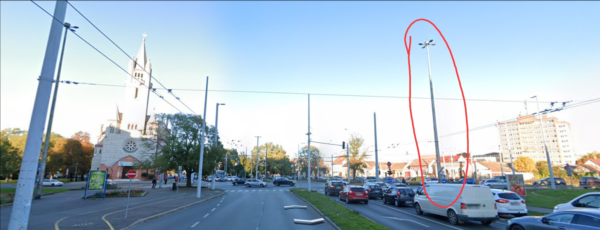 A problémás lámpaoszlopok pontos helye: Csapó utca, Csillag utca és Rakovszky Dániel utca között