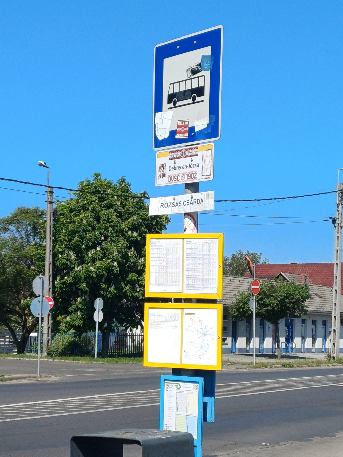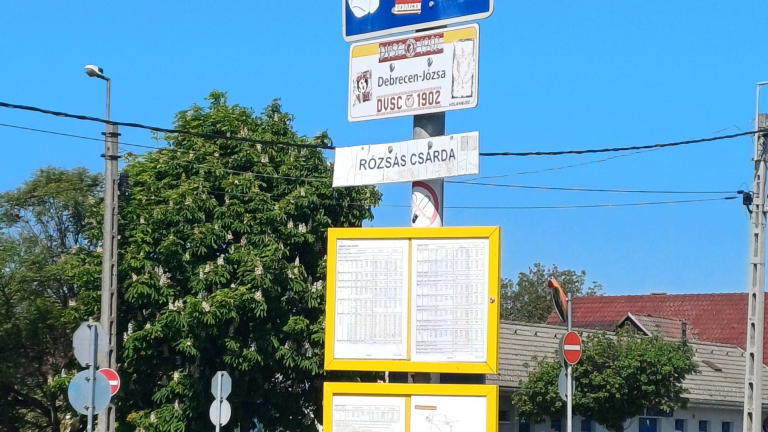 Telematricázott buszmegálló tábla Józsán, a Rózsás Csárda buszmegállóban, Hajdúböszörmény irányába.
