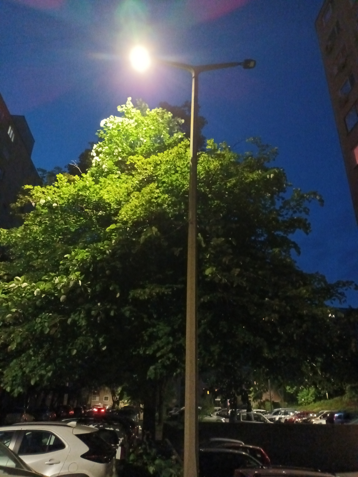 A Böszörményi út 29. szám alatti társasháznak a hátsó bejáratától nem messze lévő kétkarú lámpaoszlop egyik lámpafeje nem világít.
