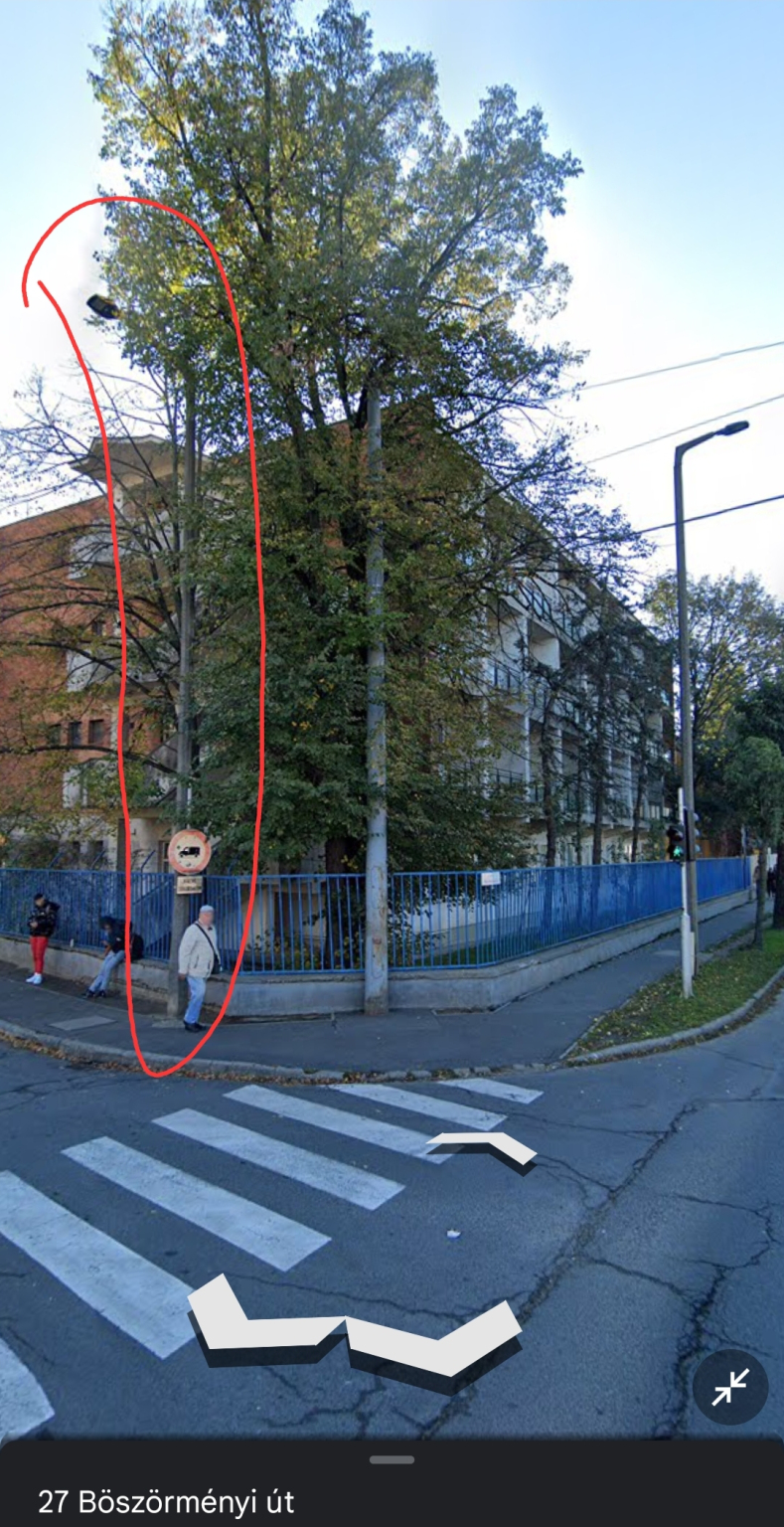 A Domokos Lajos utca 32. szám alatti társasházat és a Böszörményi utat (35-ös főútvonalat) összekötő útnak a Böszörményi út felől tekintve az 1. beton lámpaoszlop nem világít.