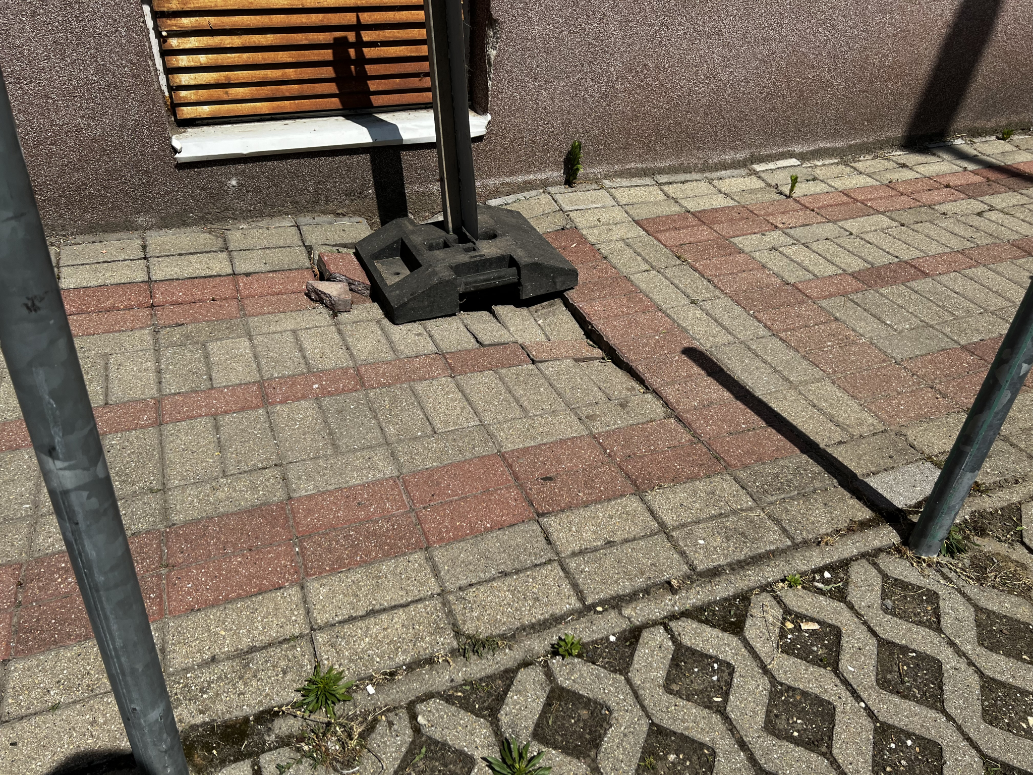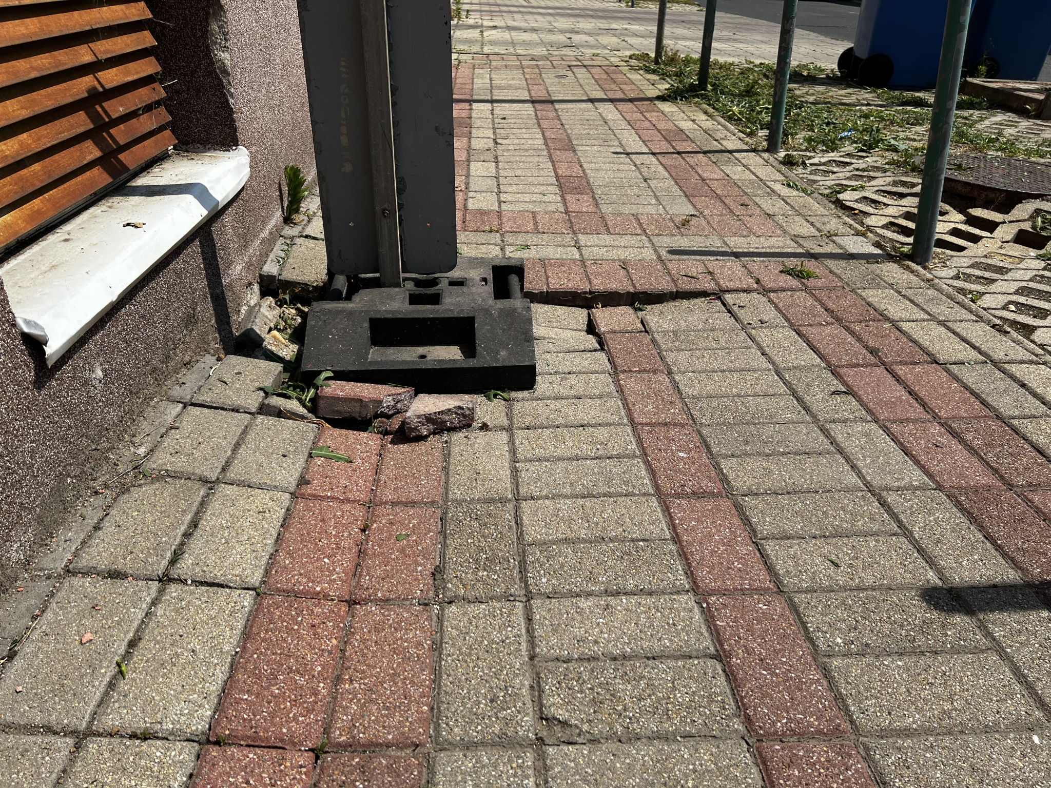 A problémát már jeleztük a társasház közös képviselőjének is, aki felvette a kapcsolatot az önkormányzattal telefonon. Ezt követően a helyszínre kiérkeztek, és kihelyeztek egy veszélyre figyelmeztető táblát, azonban ennek már több mint másfél éve, és azóta semmilyen további intézkedés nem történt.