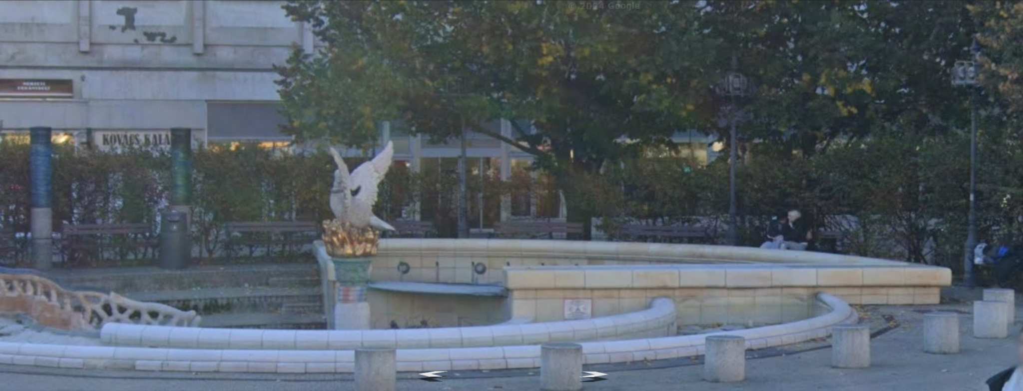 A Piac utca 11-15. szám alatti Hotel Aranybika szálloda közelében lévő zenélő szökőkút évek óta nem zenél.