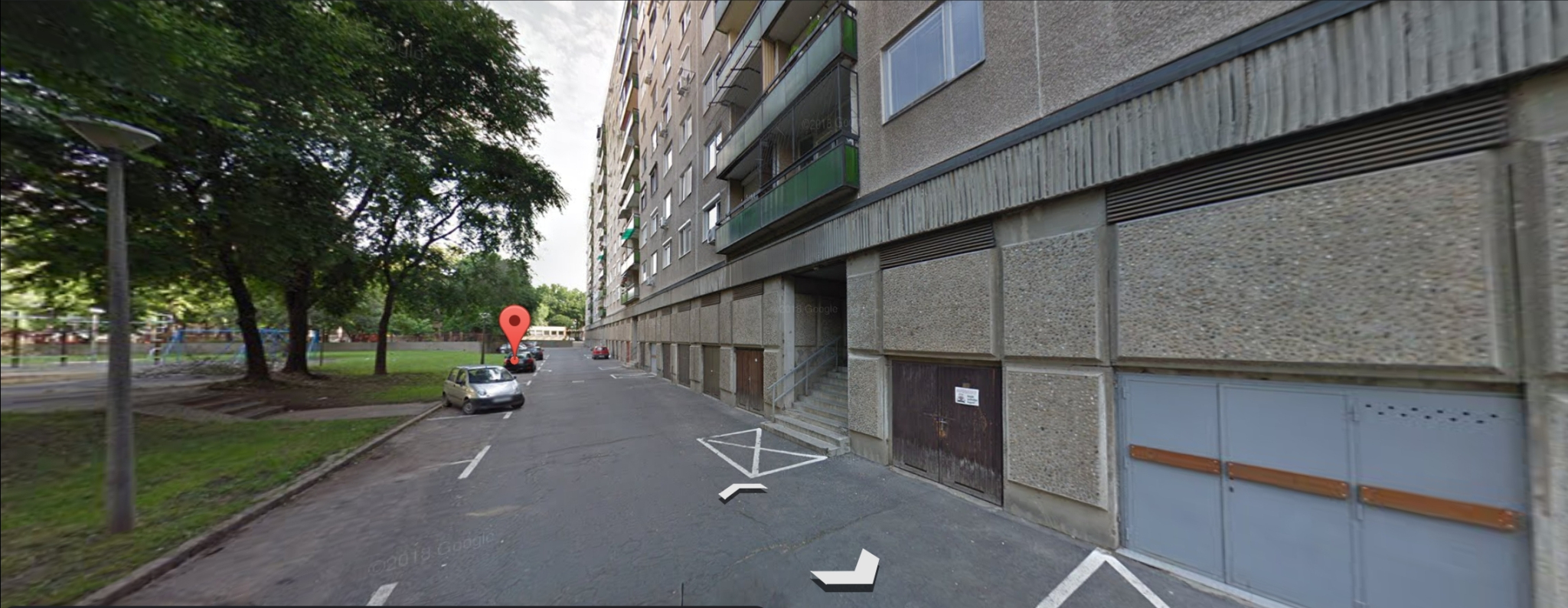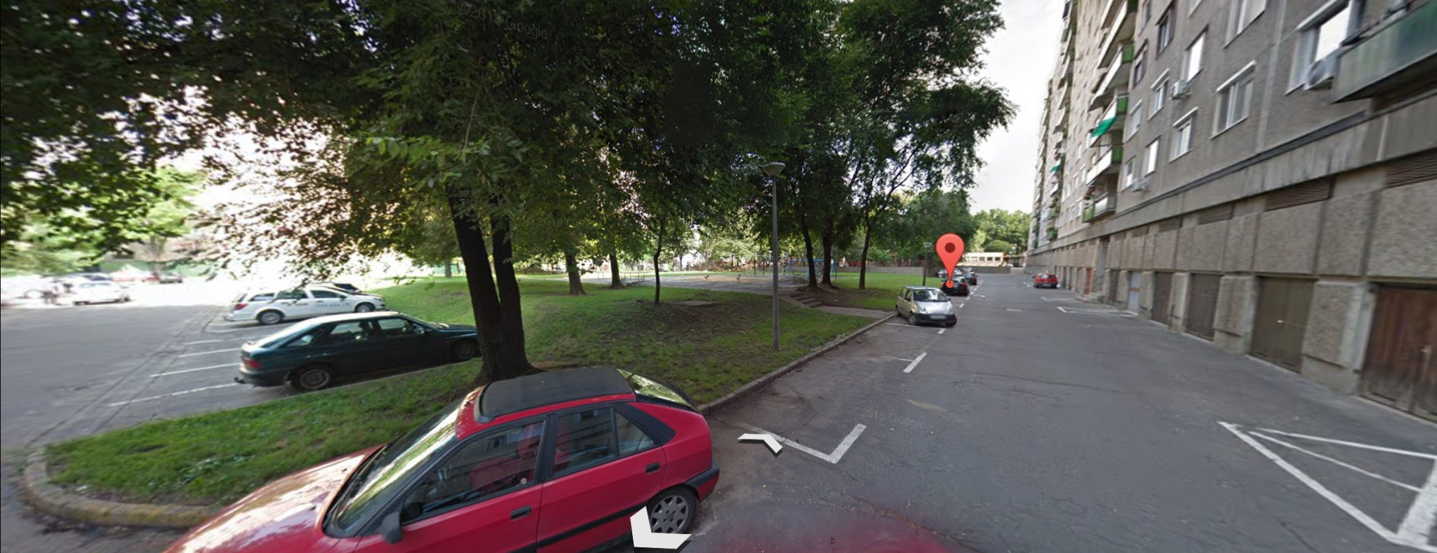 A Darabos utca - Hunyadi János utca - Bethlen utca közötti tömbbelső parkolójában az egyik lámpaoszlop gyengébben világít mint az összes többi.
