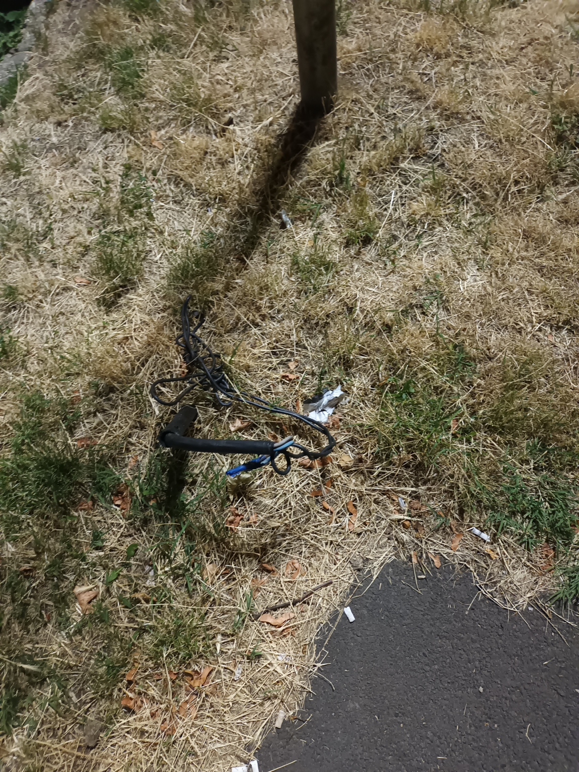 A földből elektromos kábelek állnak ki, szabadon hozzáférhetőek.