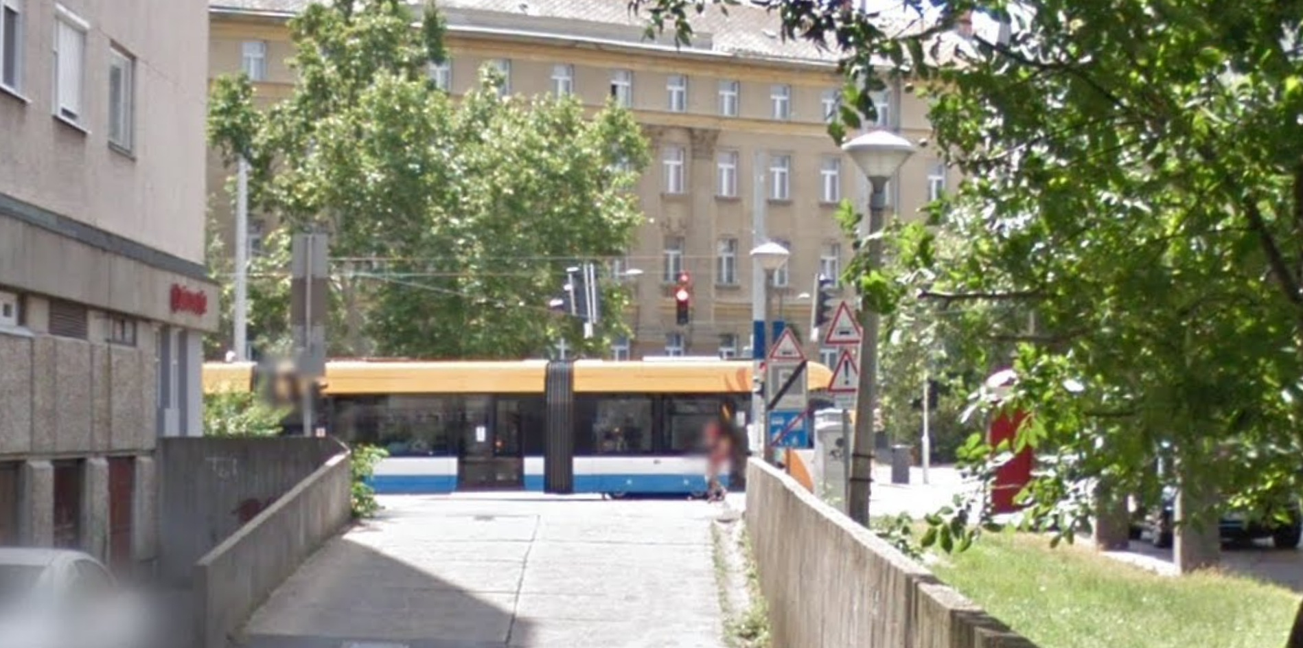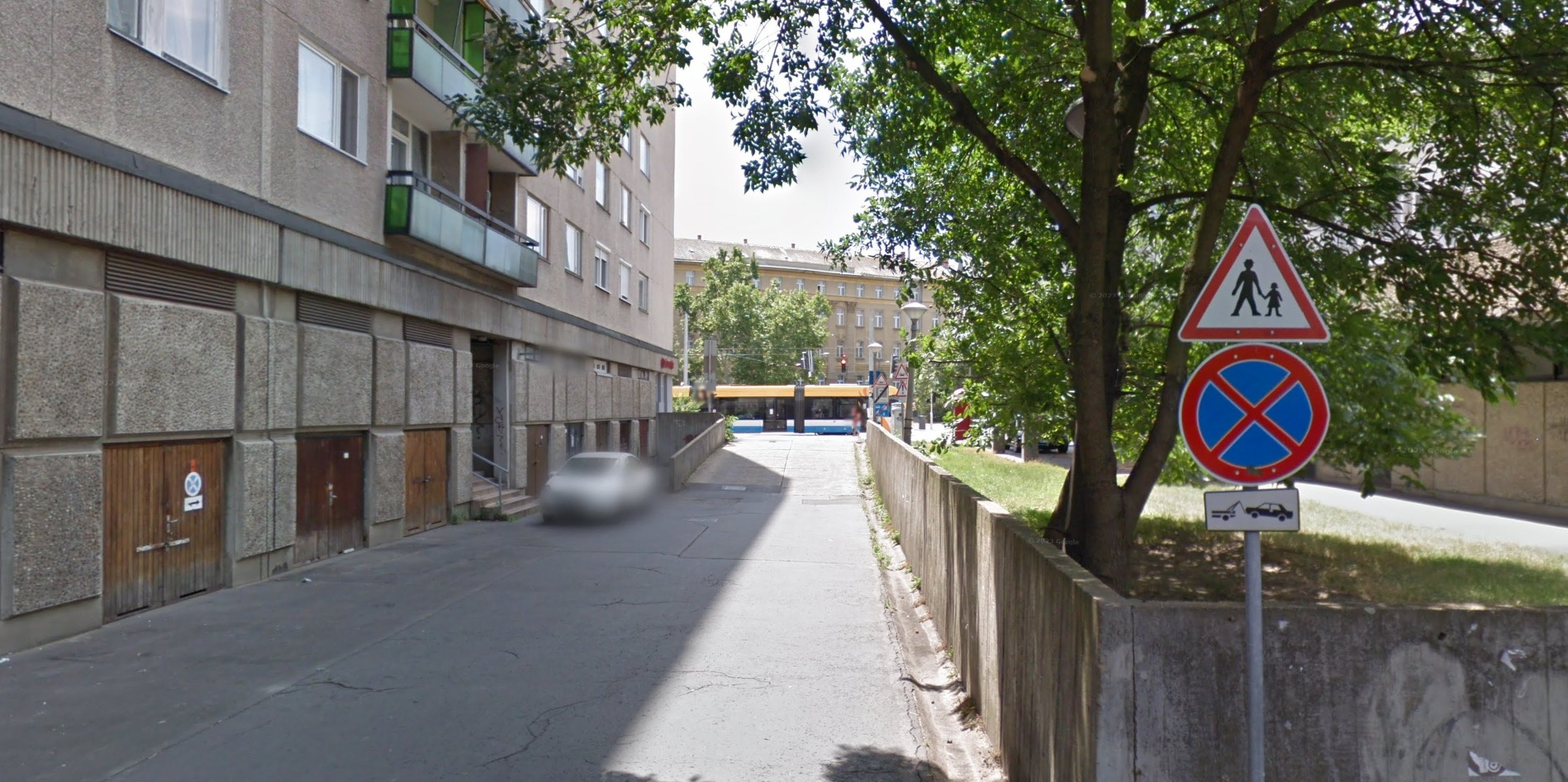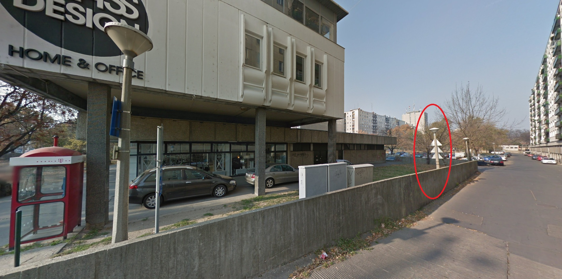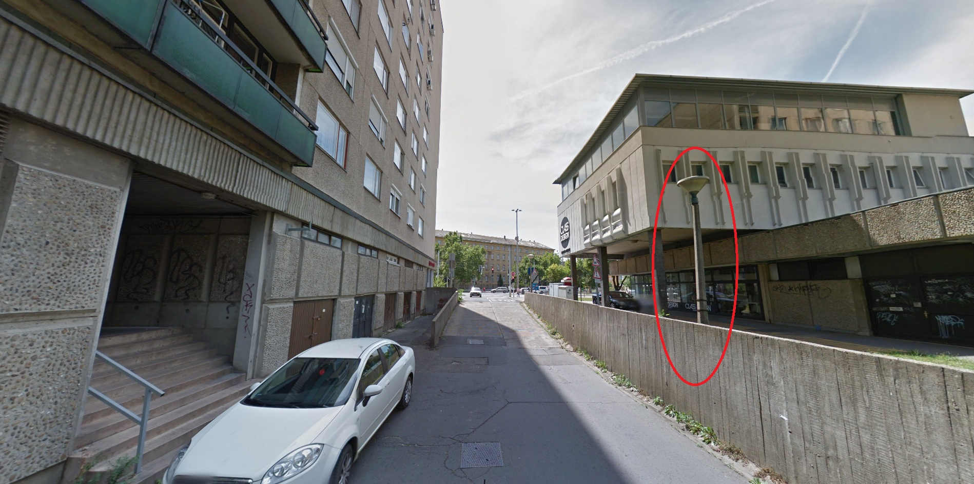 A Darabos utca 4. szám alatti átjáróval szemben lévő lámpaoszlop elkezdett megdőlni.