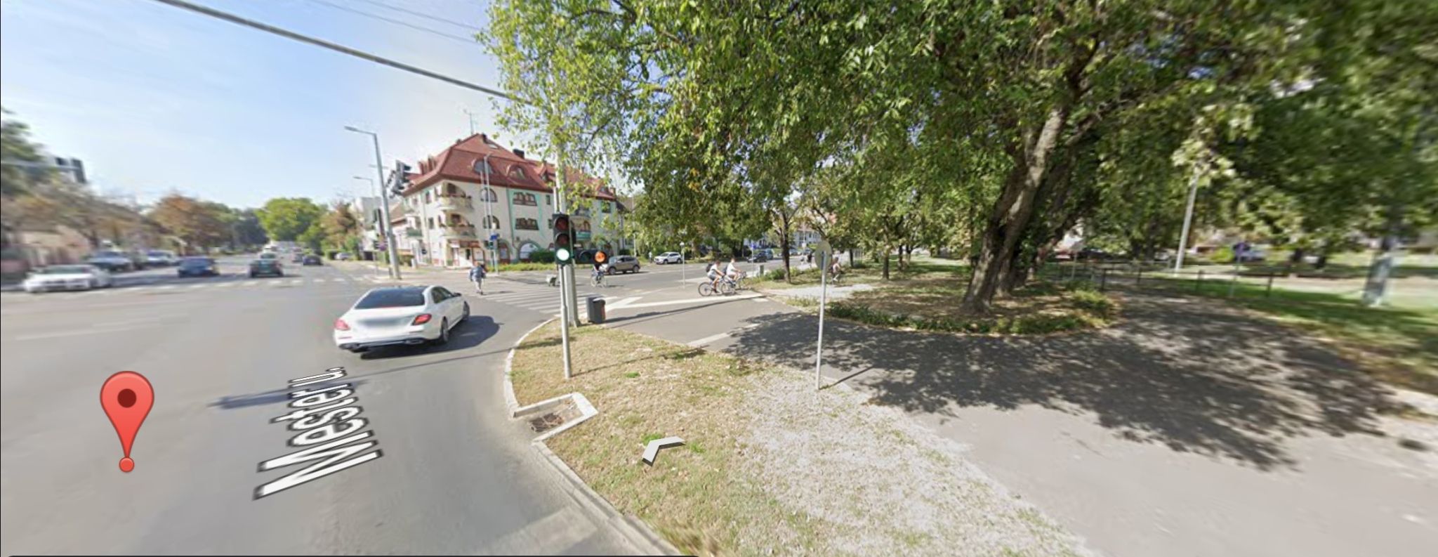 A Csemete utca és a Mester utca kereszteződésének a közelében lévő villamospályát keresztező gyalogos átjáróban az egyik lámpa oszlop nem világít.