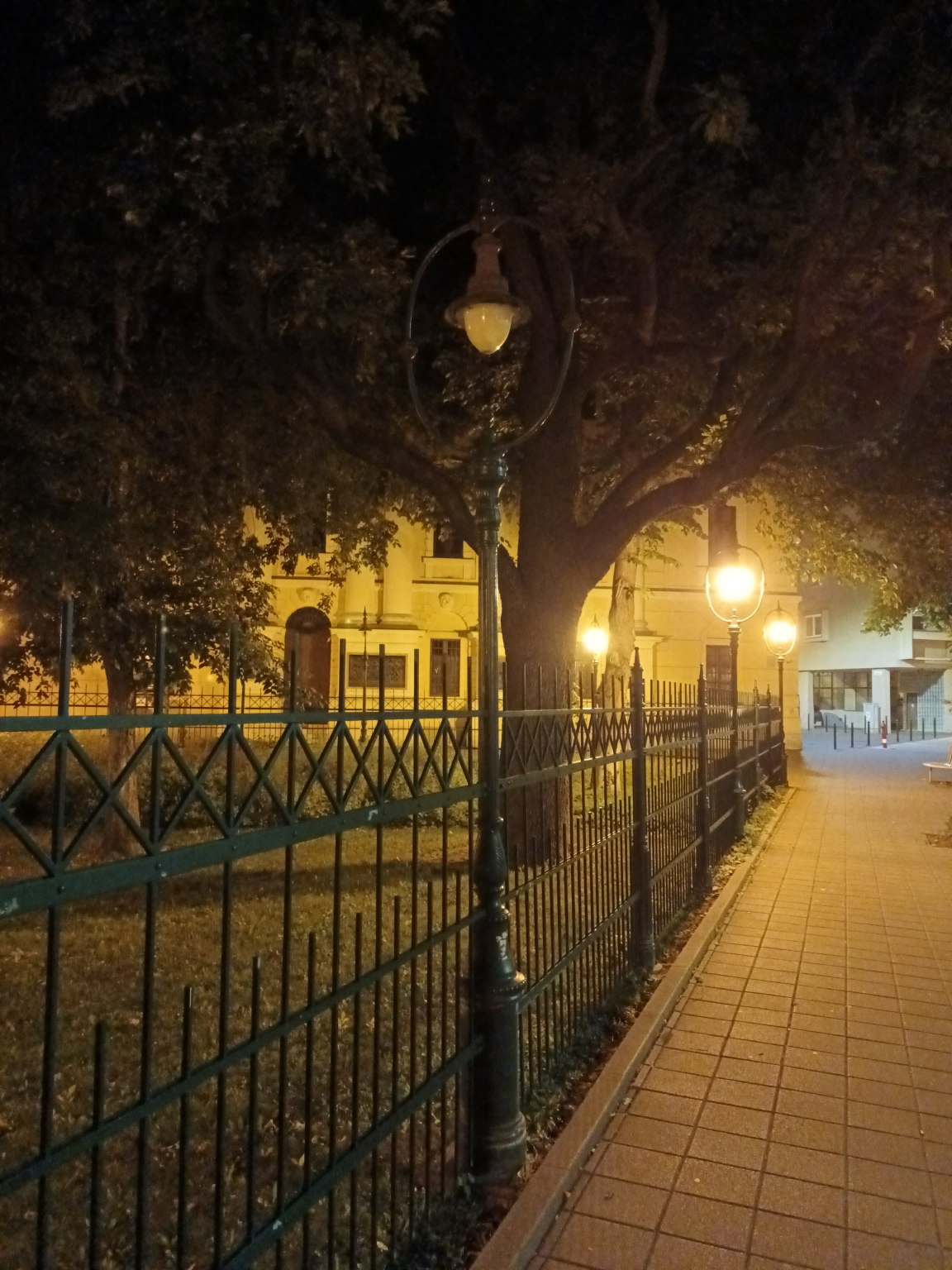 A Református Kollégium és a Református Nagytemplom között megtalálható Emlékkert körüli kerítés mentén elhelyezkedő lámpaoszlopok közül 9db nem világít.