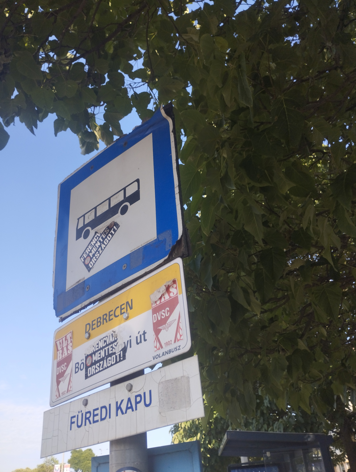 A Debrecen, Böszörményi út (Balmazújváros felé) lévő VOLÁN megállóhely név tábla matricás cseréjét kérném.