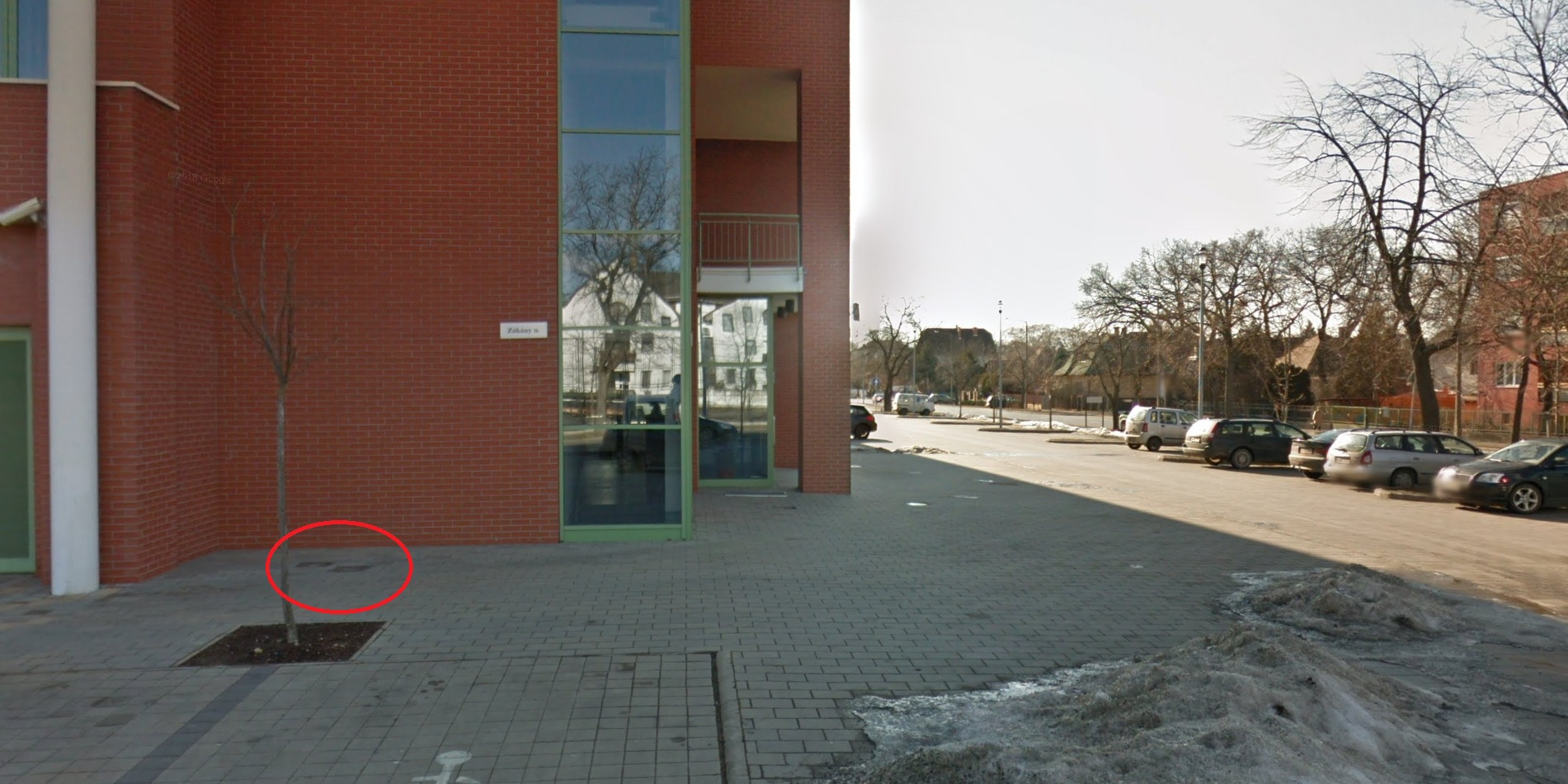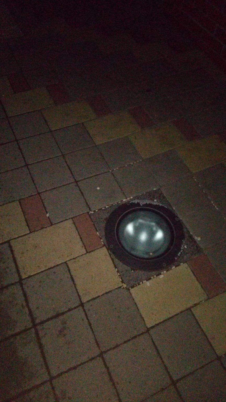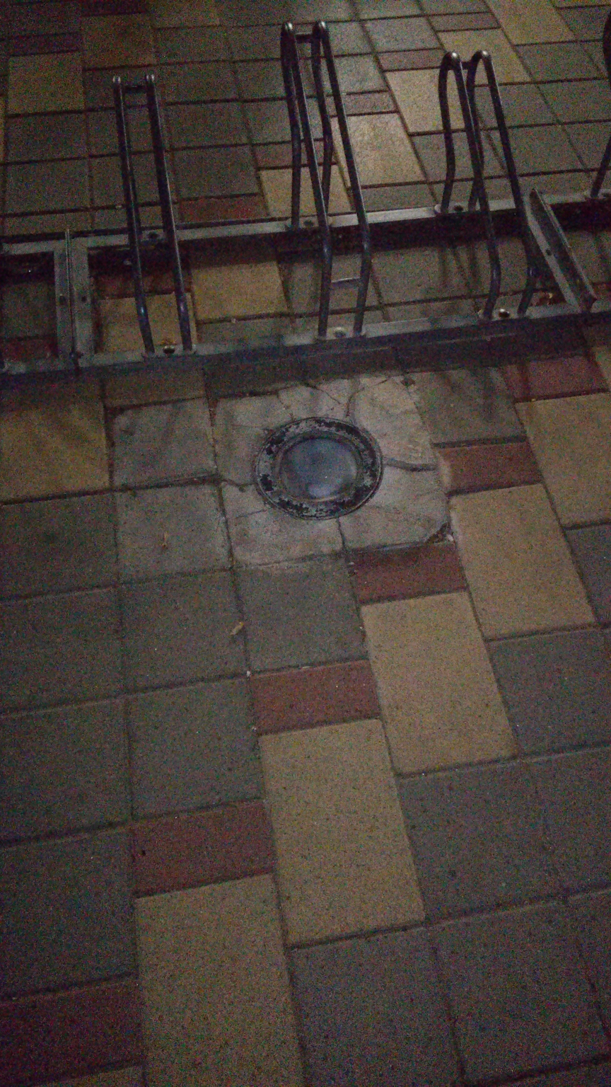 A Debreceni Sportuszoda épületének a Zákány utcára és a Hadházi útra néző oldalain az épület körüli talajba süllyesztett lámpatestek nem világítanak.