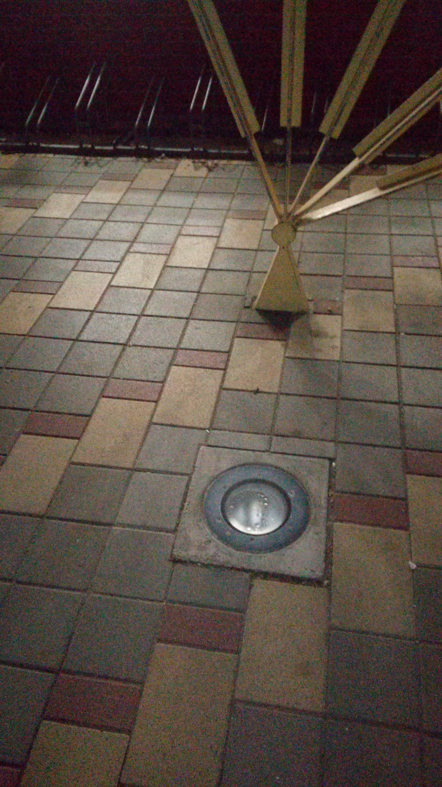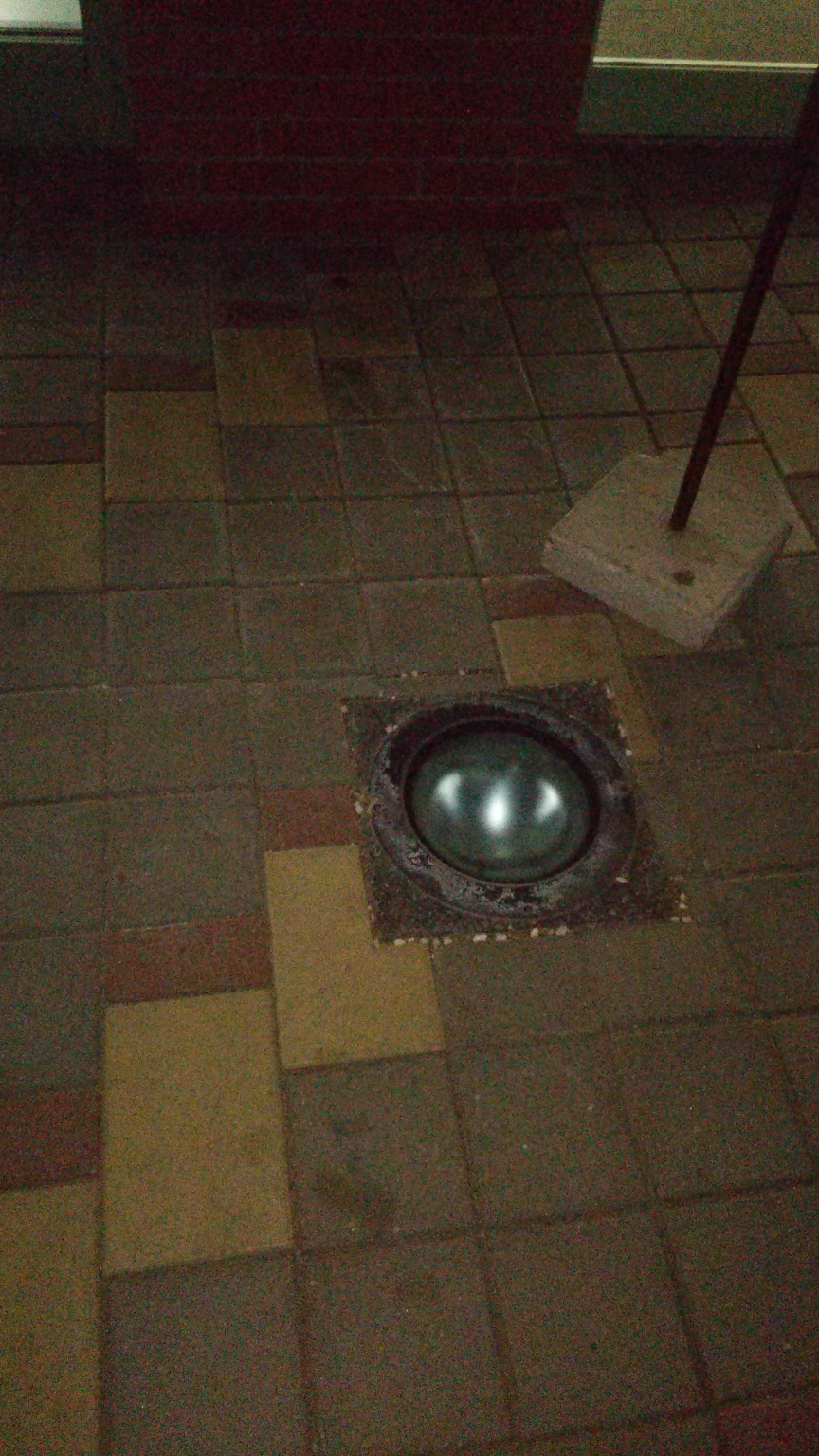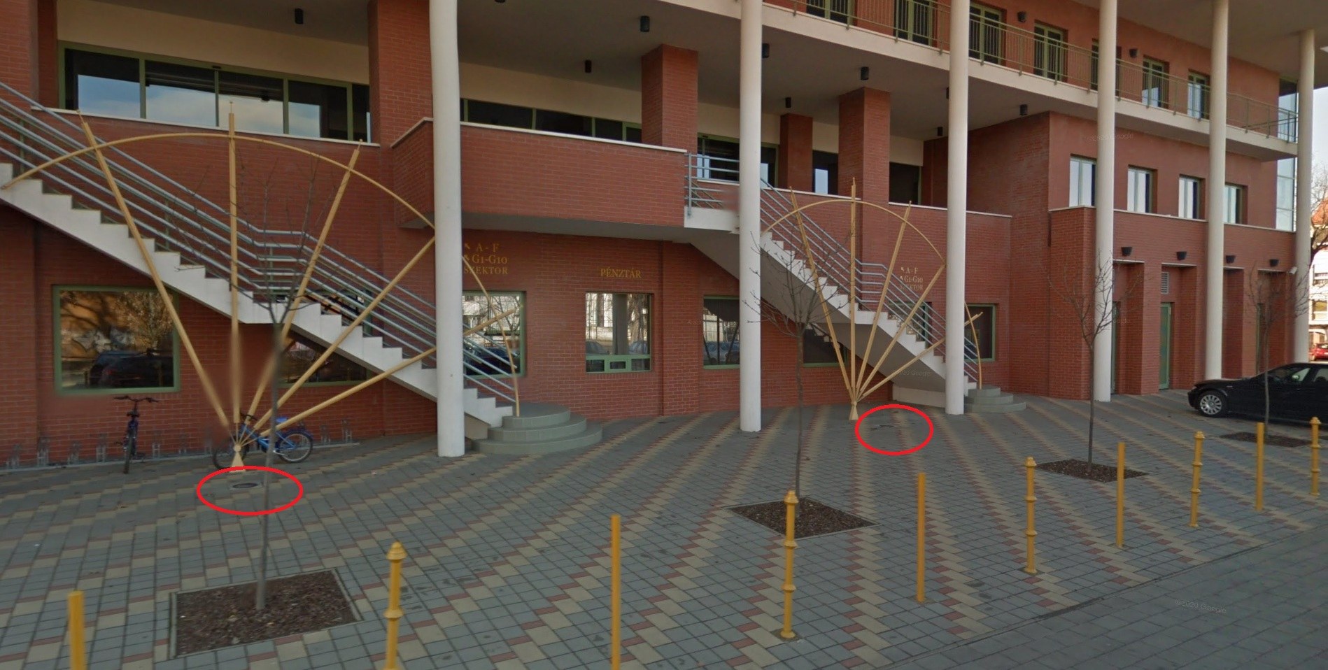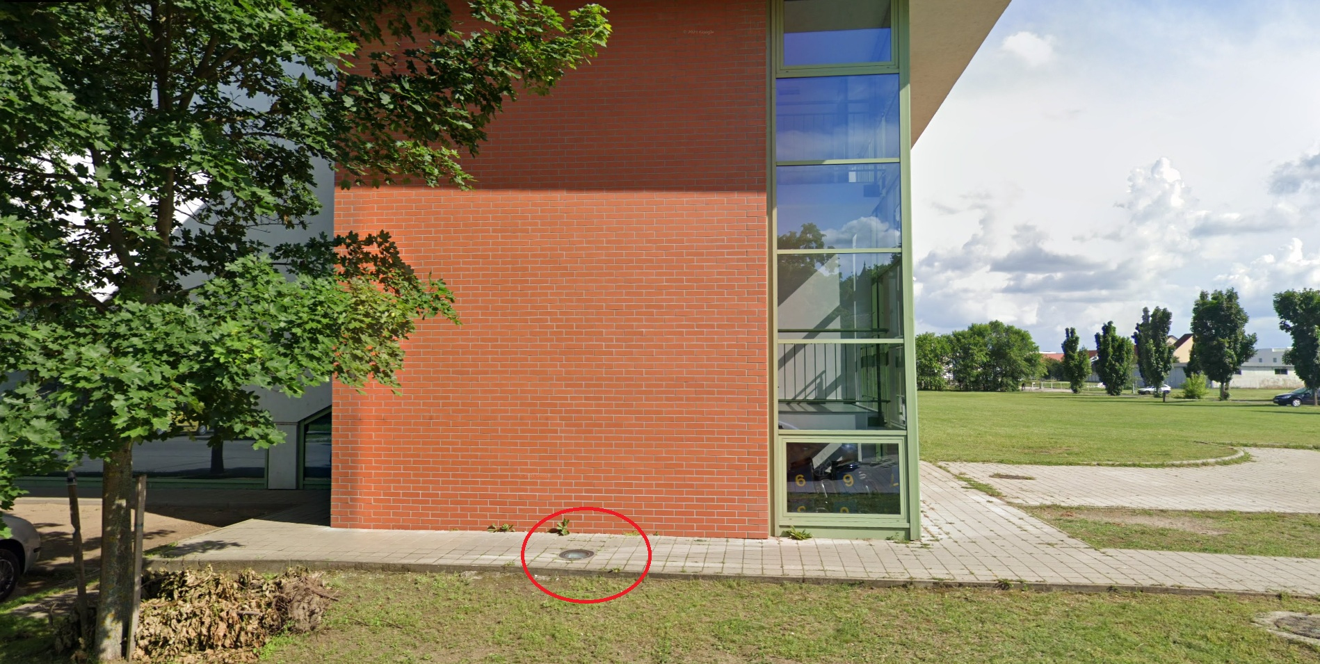 A Debreceni Sportuszoda épületének a Zákány utcára és a Hadházi útra néző oldalain az épület körüli talajba süllyesztett lámpatestek nem világítanak.