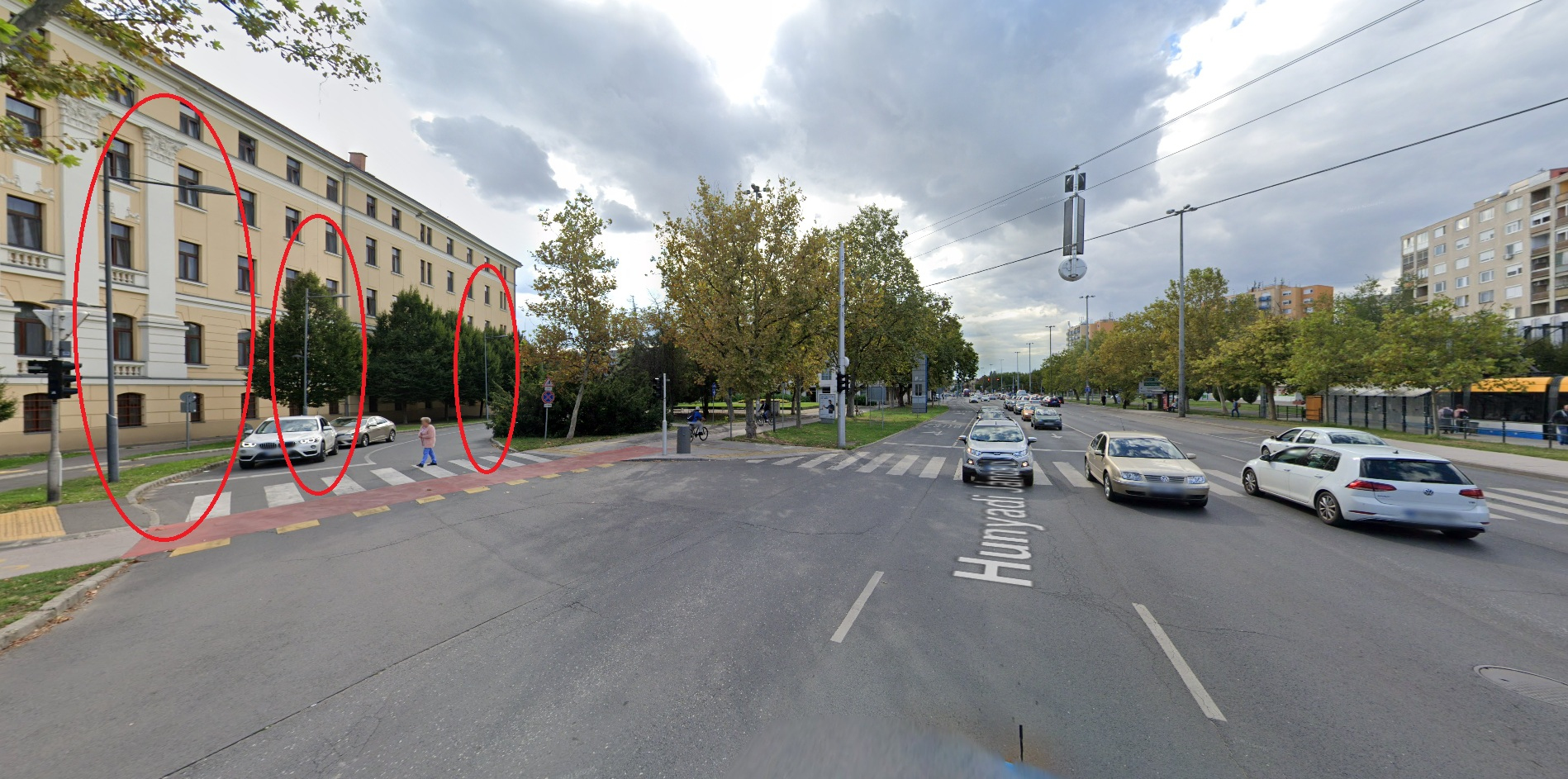 A Debreceni Református Kollégiumnak a Hunyadi János utcára néző oldala előtti járda mellett lévő 3 egymásutáni magas lámpaoszlop indokolatlanul elsötétült egyszerre 2025.08.04-én kb. 23:25 körül valószínűleg hirtelen fellépő kábelszakadás vagy zárlat miatt és azóta se világítanak.