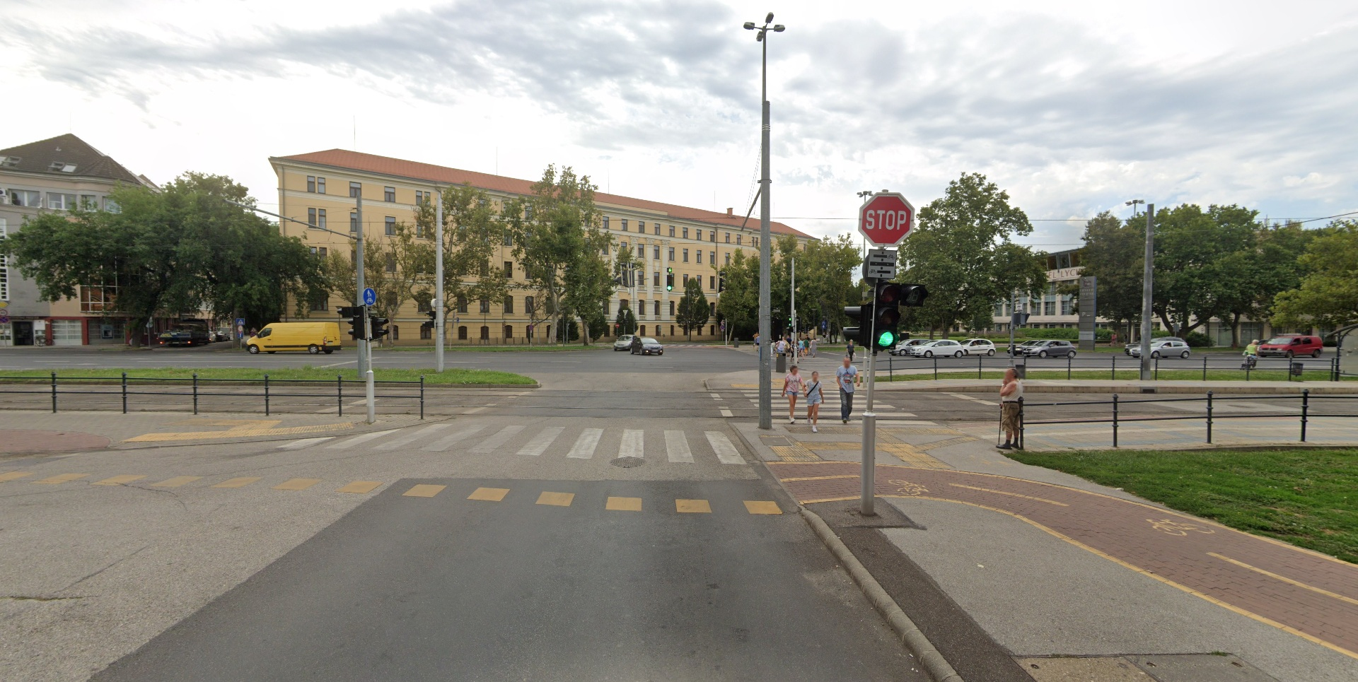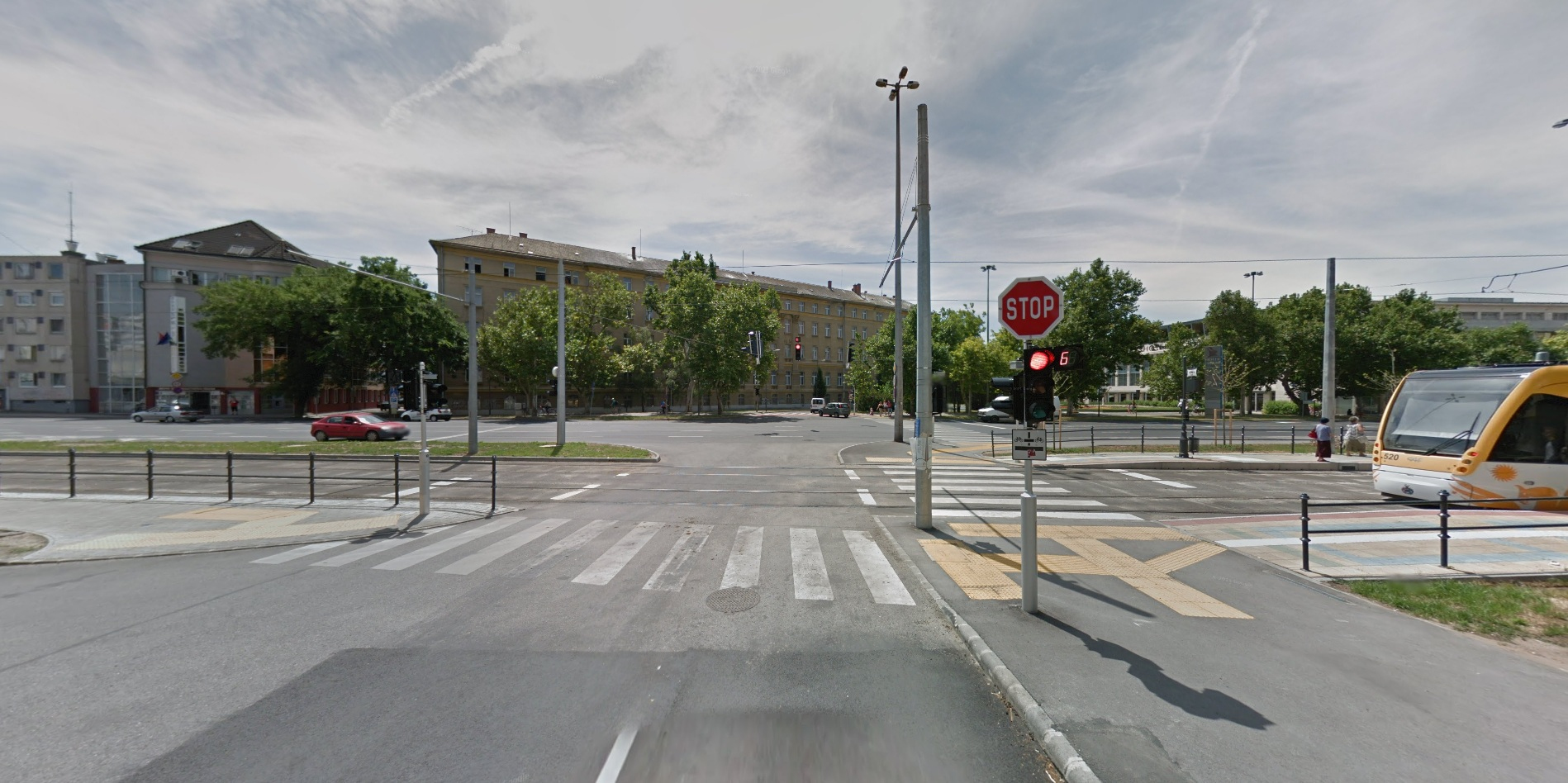 A Darabos utca és a Hunyadi János utca kereszteződésében lévő Stop táblás jelzőlámpa oszlopot megrongálták, így most el van hajolva.