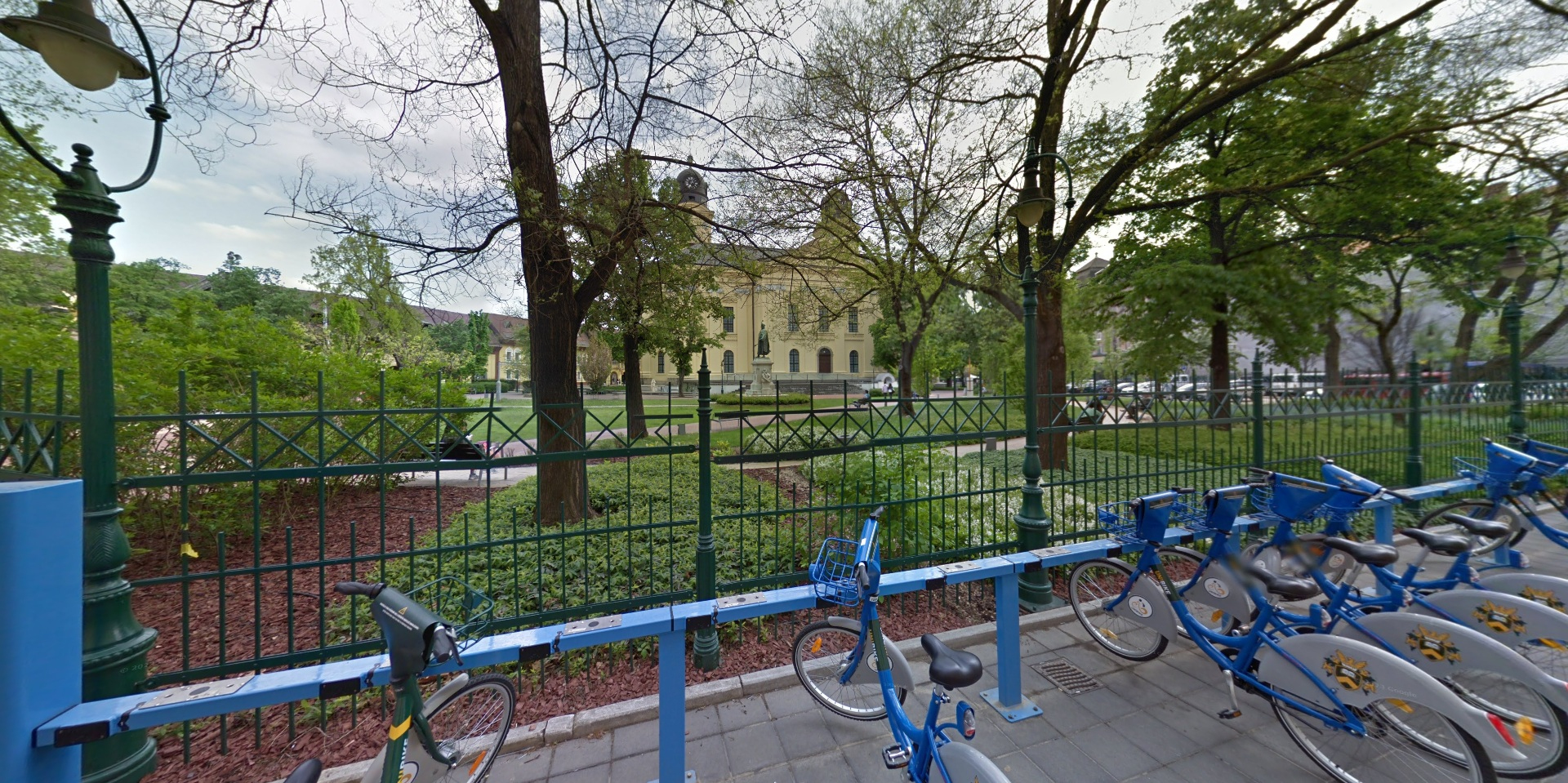 A Református Kollégiumnak a Református Nagytemplomra néző oldala előtt az egyik kovácsoltvas lámpaoszlop világítása nem működik.