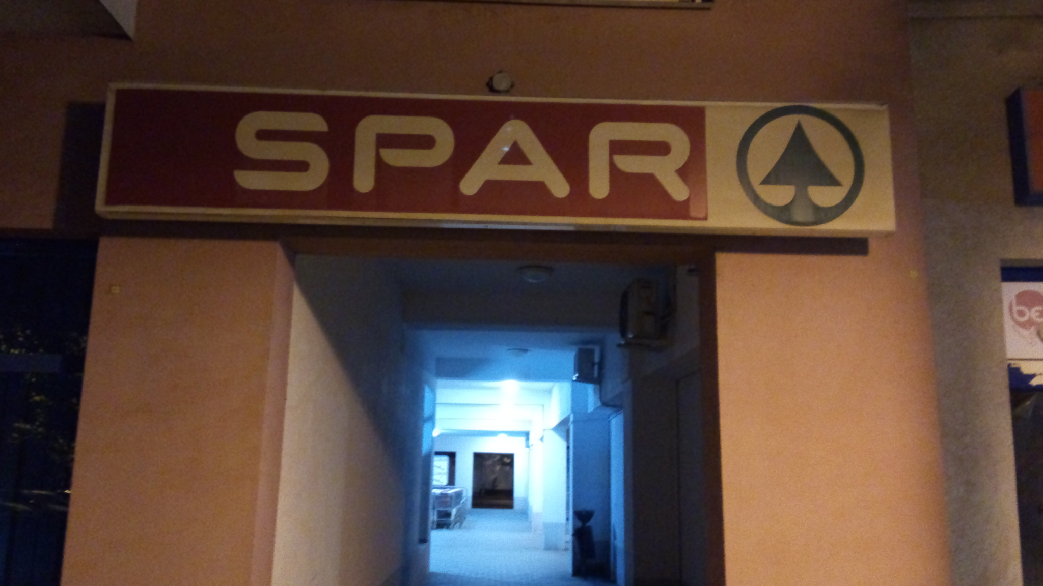 Ugyan ennek az átjárónak az elején és a végén lévő Spar felirat nem világít.