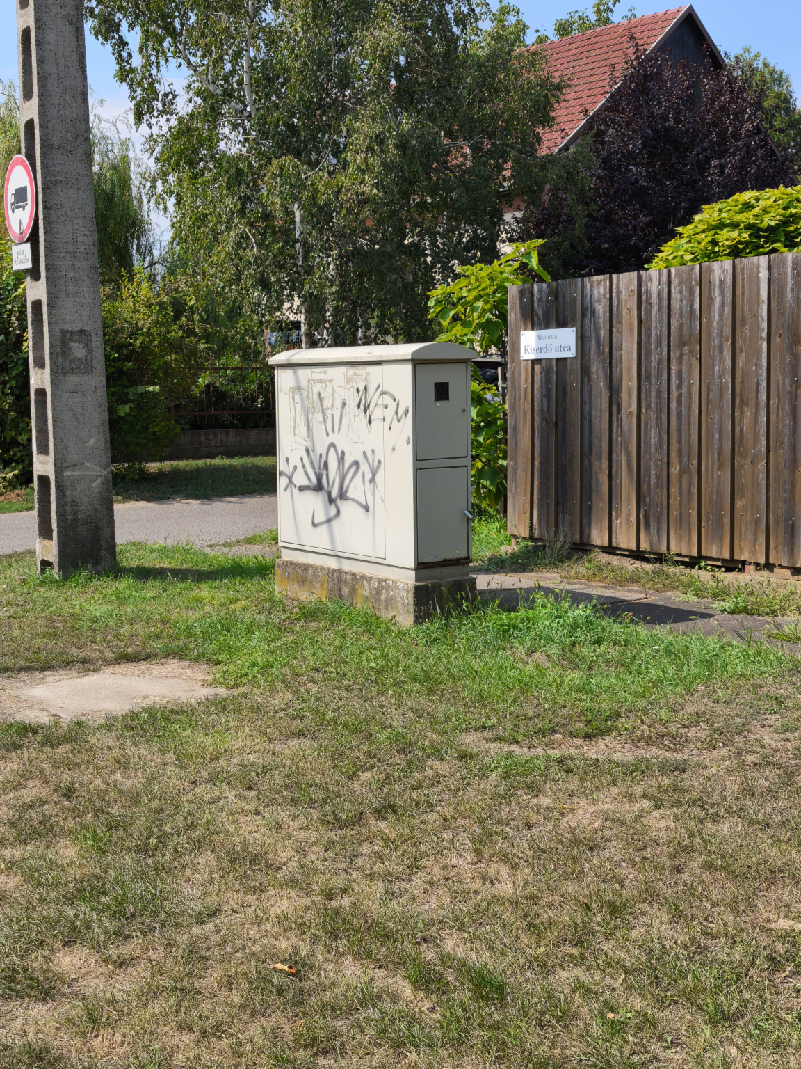 Évek óta össze van firkálva a Vodafone közműszekrény a Kiserdő utcán.