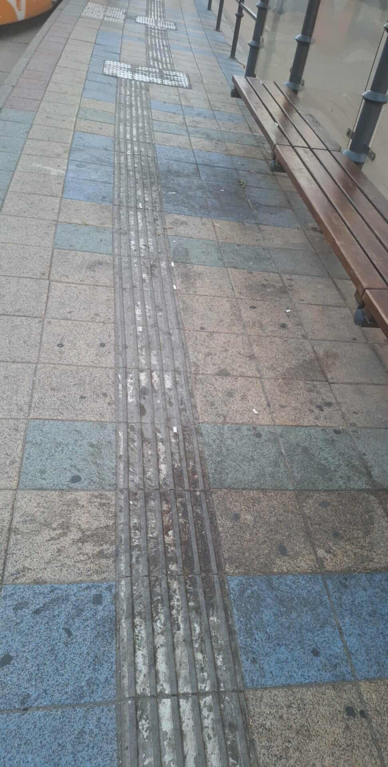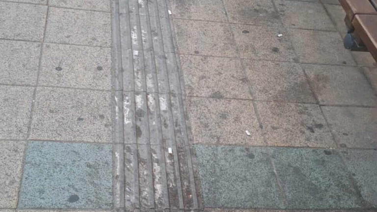 Debrecen, "Kálvin tér" elnevezésű villamosmegálló (Egyetem irányába) térköve mocskos.