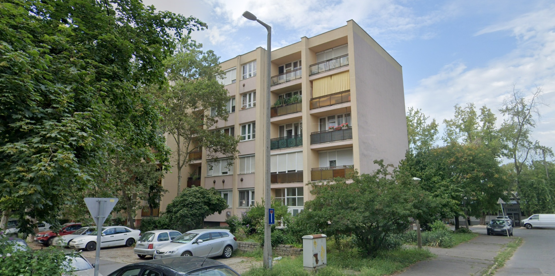 A Kurta utca 4. szám alatti lépcsőháznak a hátsó oldala előtti gyephézagrácsos parkoló melletti magas lámpaoszlop nem világít.