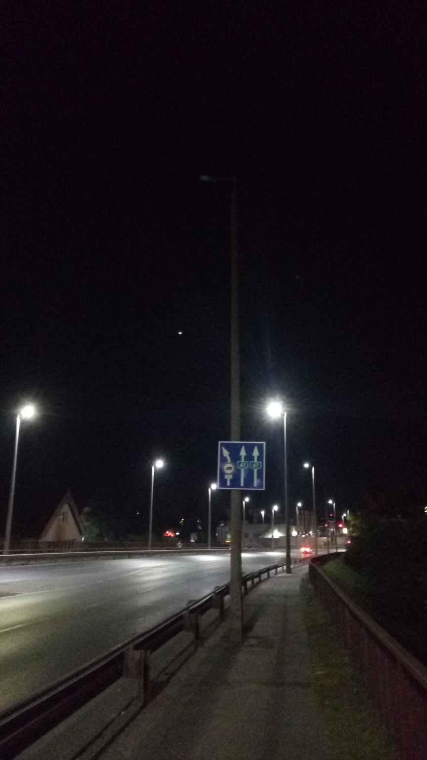 A Homokkerti felüljárón Szeged irányába haladva a Petőfi térről felhajtó ága (47802. sz. út) utáni részen a besorolás rendjét jelző Kresz táblát tartó lámpaoszlop világítása nem működik.