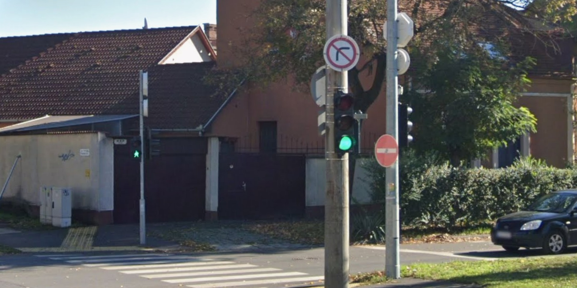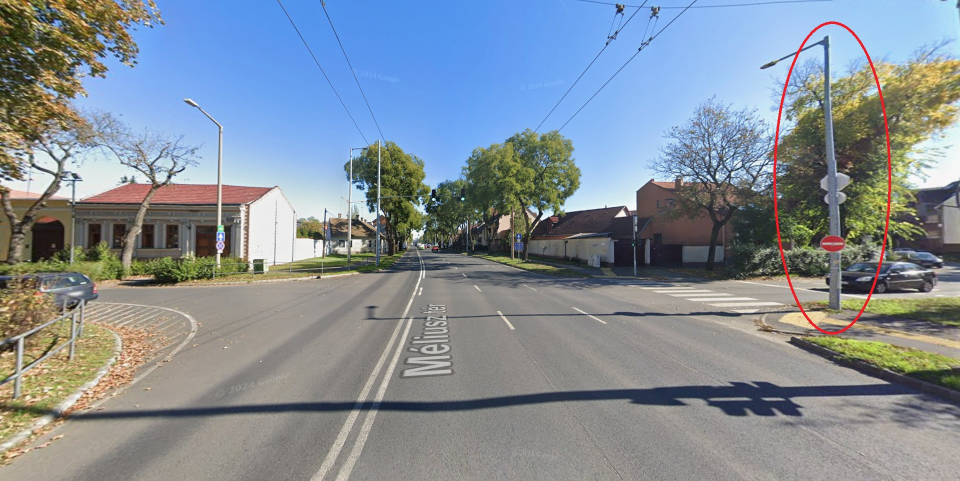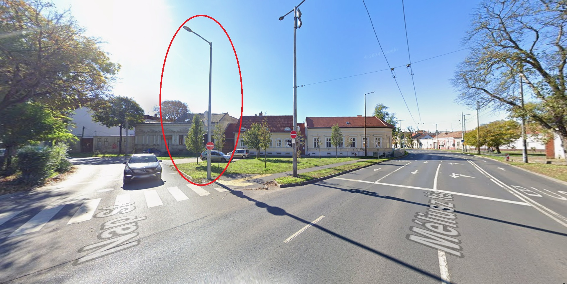 A Nap utca, Faraktár utca és a Méliusz tér kereszteződésében lévő lámpaoszlop, amin egy jelzőlámpa és egy Stop Kresz tábla is található, ajtókája hiányzik.