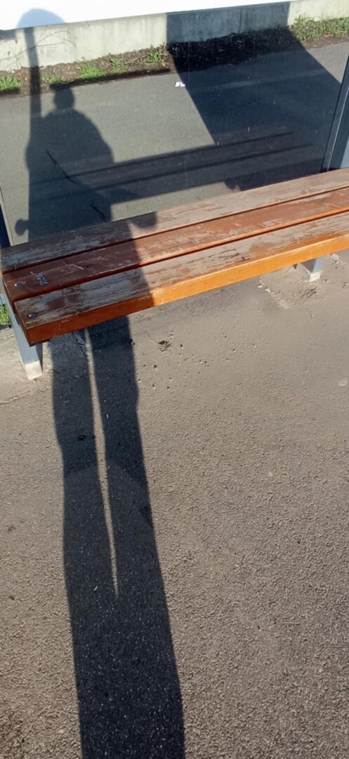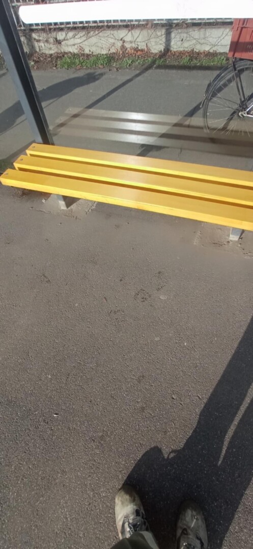 Lekopott festék a buszmegálló padról
