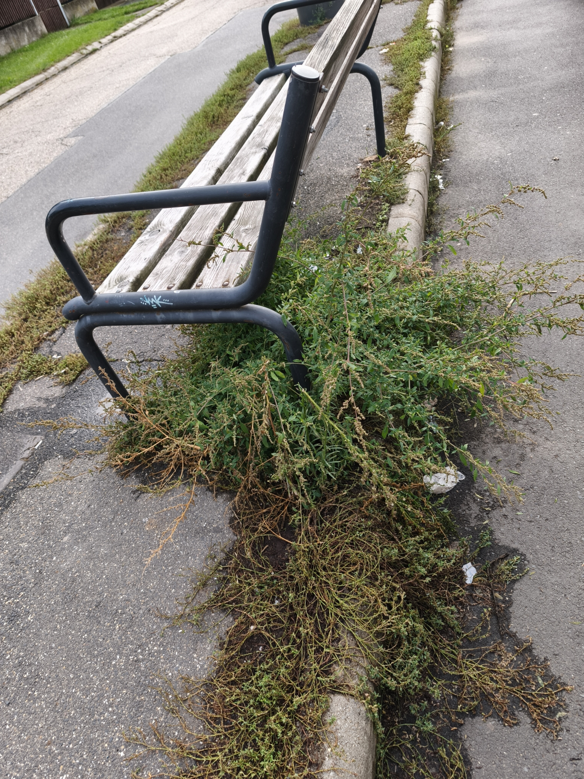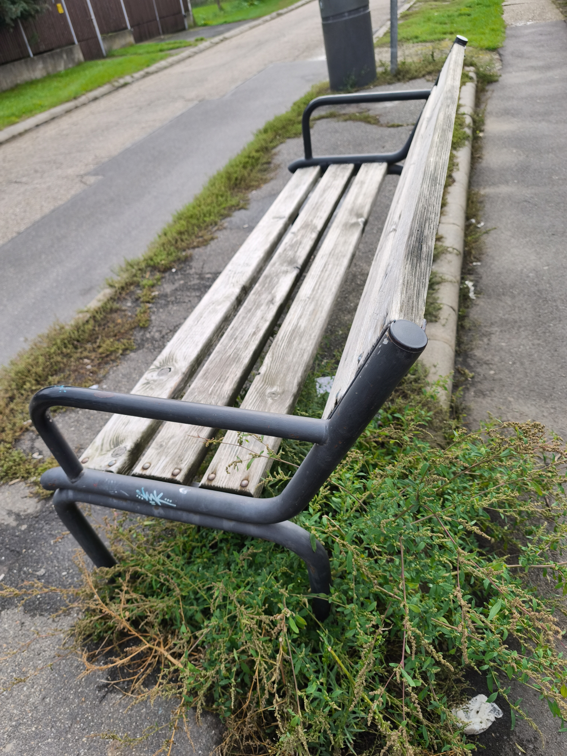 A Deák Ferenc utcán lévő Rózsás Csárda elnevezésű buszmegálló a képeken is látható nagyon rossz állapotban van: hatalmas gazok, a pad festését teljesen kiszívta a nap.