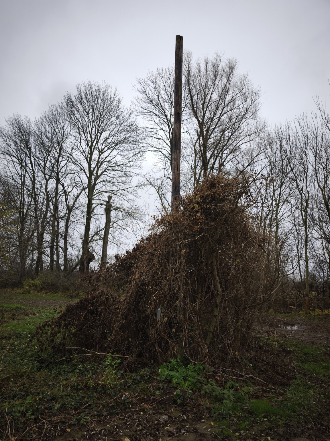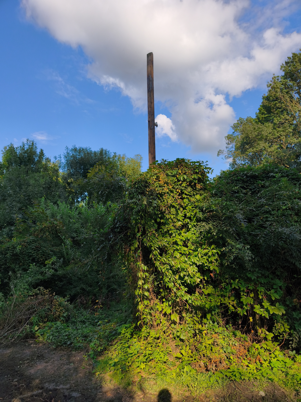 Egy funkció nélküli, régen nem használt villanyoszlop maradt kint a Völgy utca végéhez közel, a Tócó patak mellett, a térképen jelölt helyen. A természet szépen lassan visszaveszi magának.