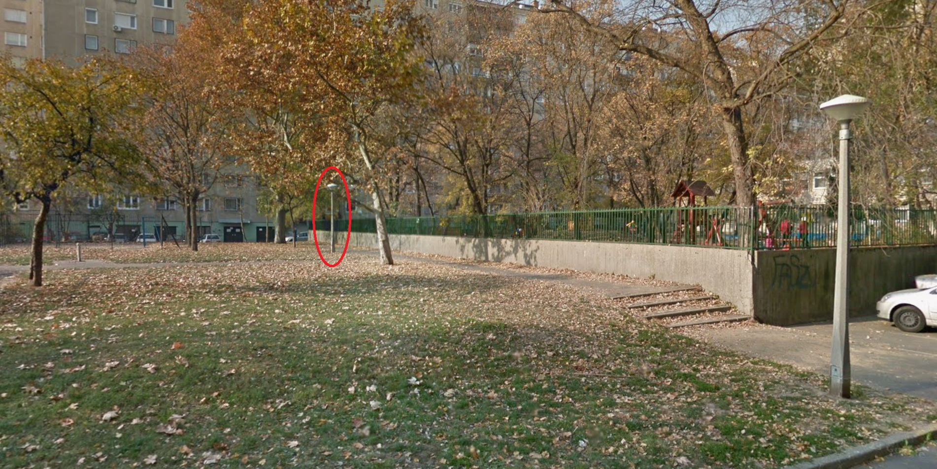 A mellékelt képeken pirossal bejelöltem a hibás lámpaoszlopot.