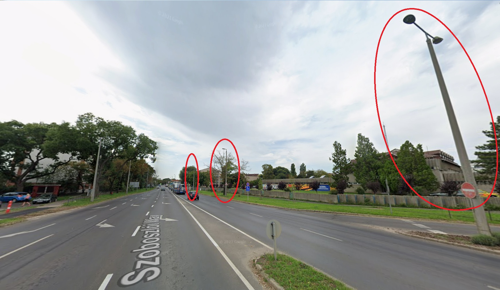 A Szoboszlói útnak a Külsővásártér és a Gyár utca közötti szakaszán a Külsővásártér felől haladva a Gyár utca fele a páratlan házszámozású oldalban az első 3 lámpaoszlopnak összesen 4 lámpafeje nem világít.