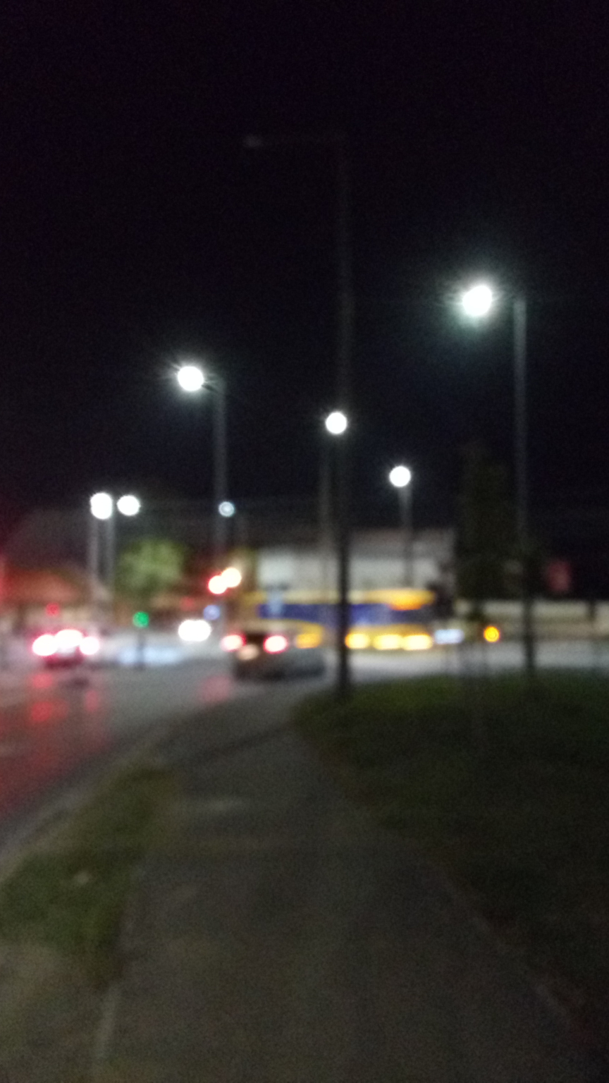 Az Erzsébet utca 48. szám alatti épületnek a Szoboszlói útra néző oldala előtti parkoló és szervízút melletti beton lámpaoszlop lámpafeje nem világít.