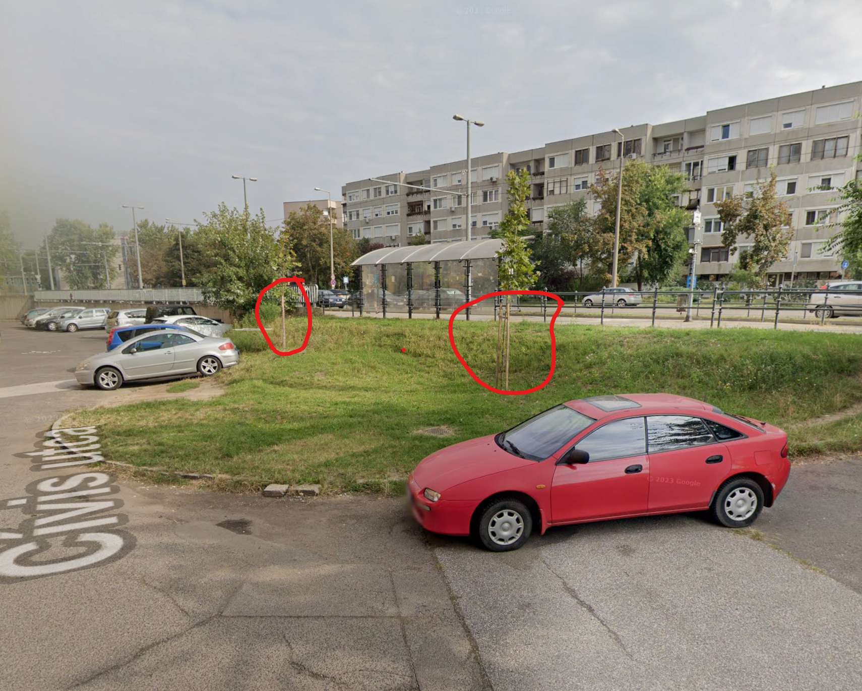 Az egy éve ültettet kis platán facsemeték tartó karóit vandálok kitörték. Kérem a tartókarókat pótolják. Köszönöm. Cívis utca 15. garázsoldal.