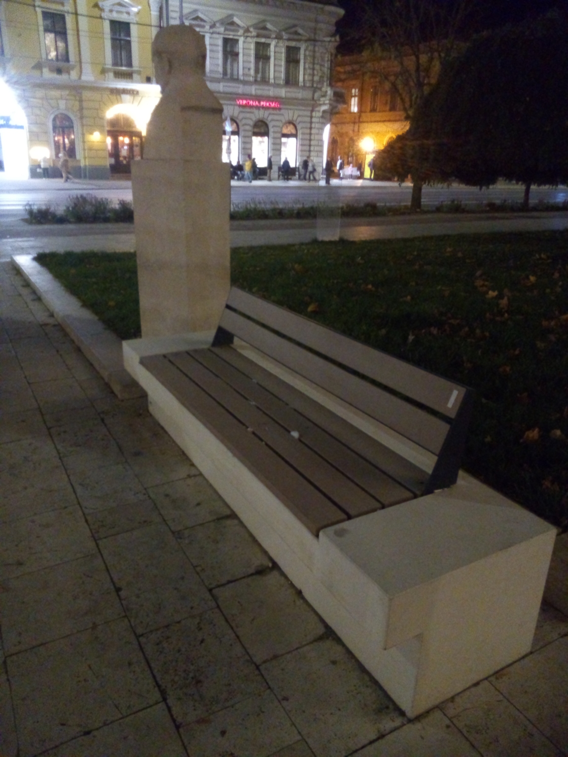 A Csokonai Nemzeti Színháznak a Kossuth utcai oldala előtti zöld-füves park mellett lévő padok rejtett díszkivilágítása nem működik.