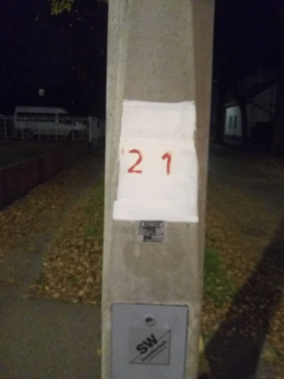 A Hadházi út és a Kórház utca kereszteződésében lévő 21-es számozású lámpaoszlop nem világít.
