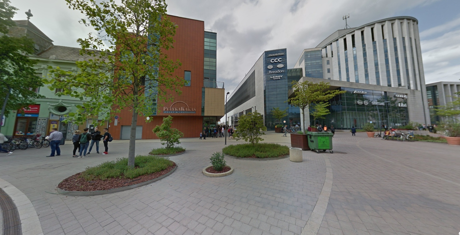 A Csapó utca 28. szám alatti PulykaKakas Üzlet és Irodaház épületének a Fórum Debrecen felé eső vége előtti lámpaoszlop nem világít.