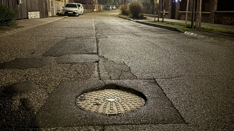 A Gergely utca 11. szám előtt megsüllyedt egy aknafedő.