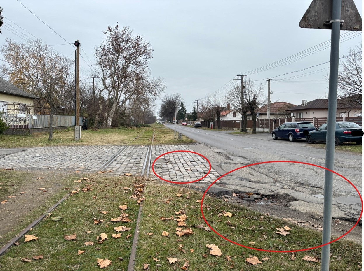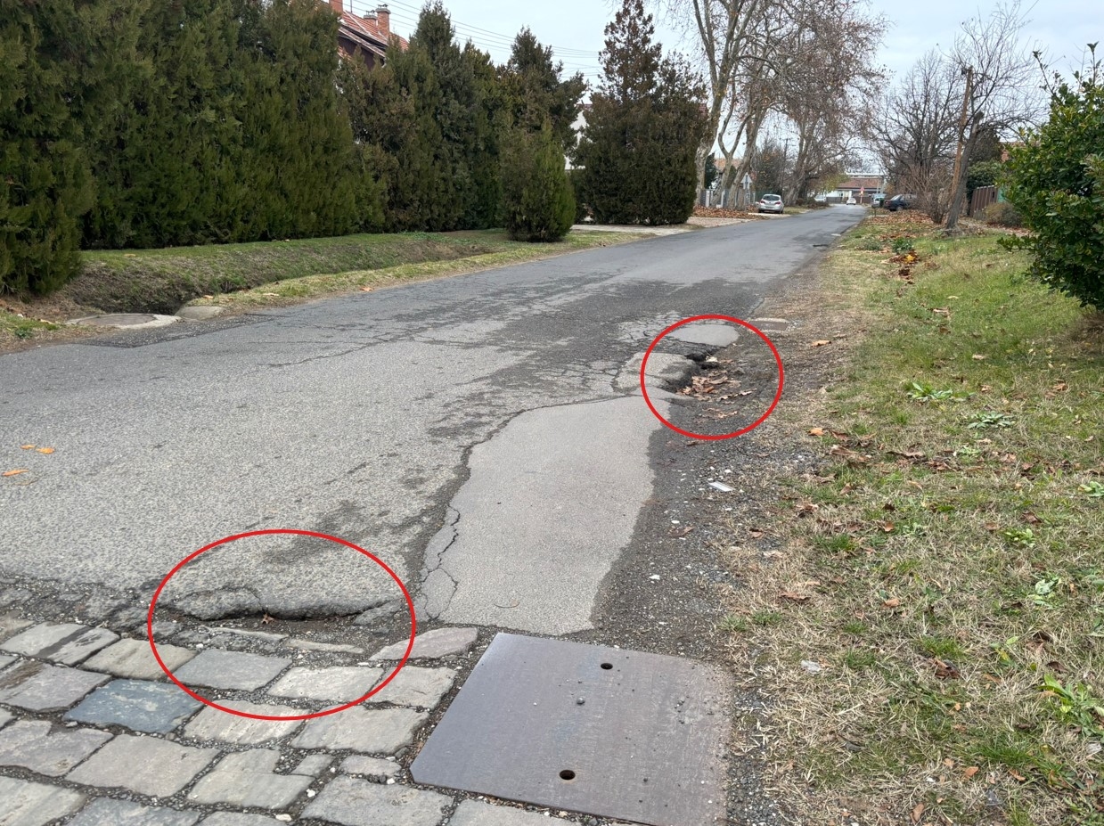 A Leiningen utca és Kabar utca kereszteződésében több ponton megsüllyedt az útburkolat és kátyúk alakultak ki az úttest szélein, kérem ezek javítását.