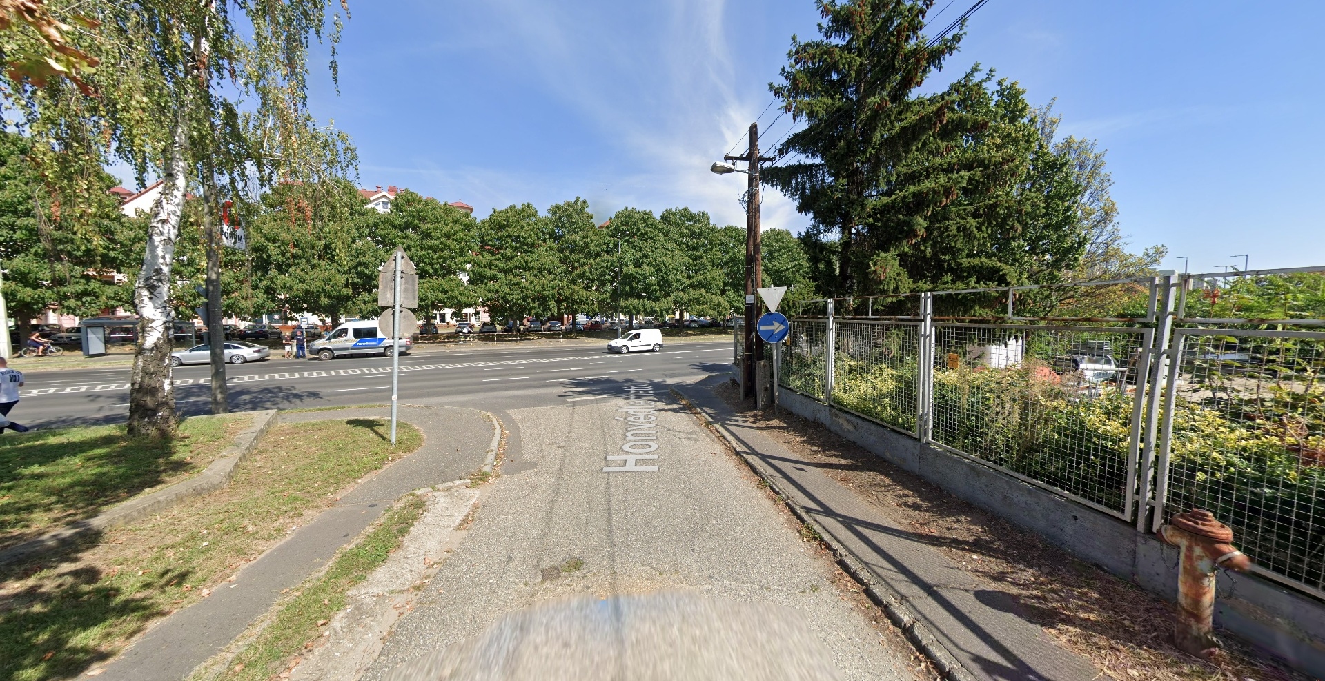 A Honvédtemető utca és a Füredi út kereszteződésénél lévő légkábeles lámpaoszlop nem világít.