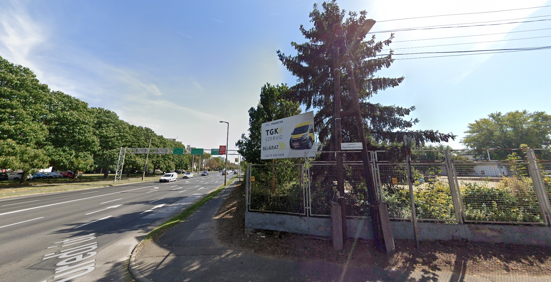Ez a lámpaoszlop a Füredi út 72-74. szám alatti épülettől nem messze a Böszörményi út 66. szám alatti ingatlannak a Honvédtemető utcai oldali kerítése előtt található meg.
