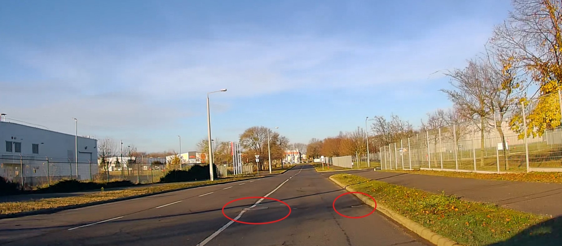 Úttestből kiemelkedő aknafedő és megsüllyedt esővízgyűjtő