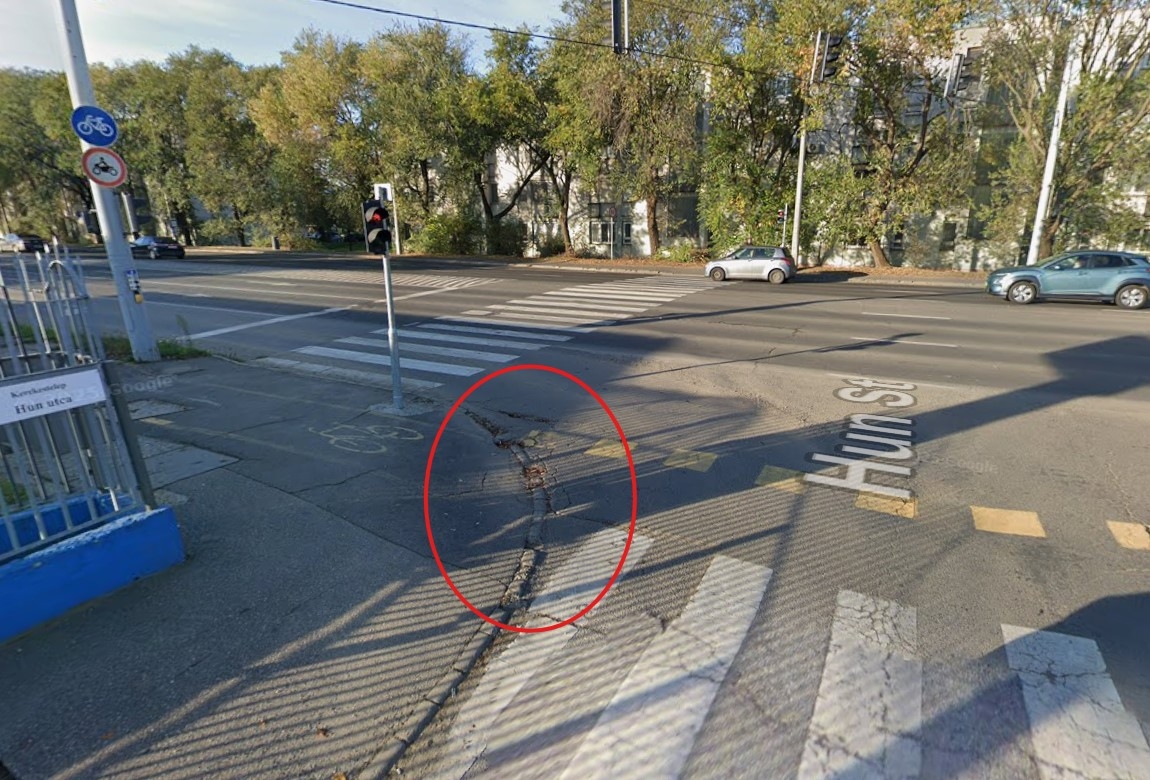 A Mikepércsi út és Hun utca kereszteződésében megsüllyedt az úttest széle, és hiányoznak szegélykövek is. Szeretném kérni a javítását, illetve a szegélykövek pótlását.