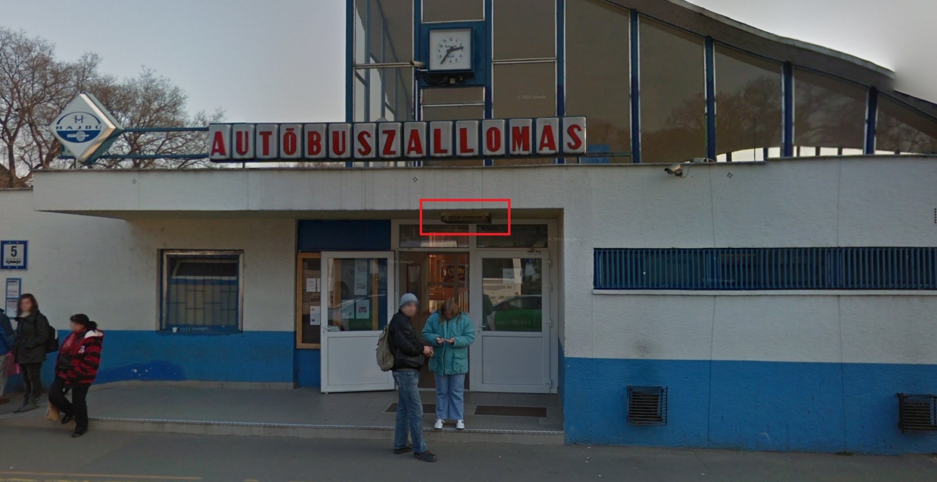 Az Autóbuszállomás épületének a bejáratainál lévő mennyezeti lámpatestekben lévő fényforrások egy része nem világít és bent a váromtermet megvilágító lámpatestek egy része szintén nem világít.
