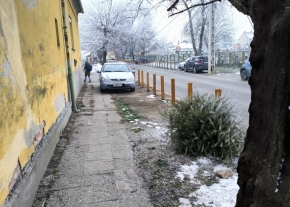 A Füredi út 10. előtt rendszeresen felállnak a járdára.