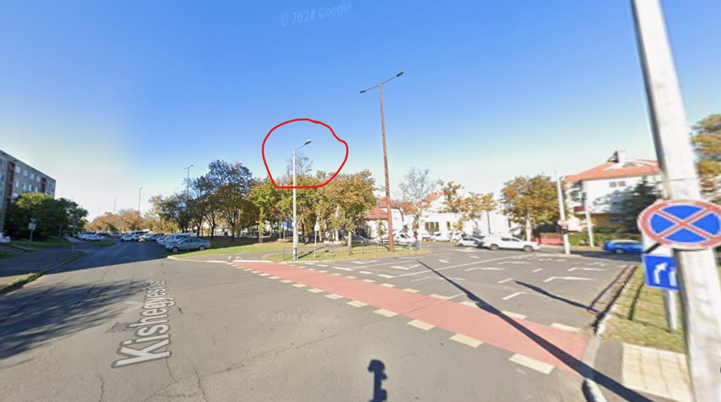 A képen jelölt lámpa ki van égve. Pont a zebránál van, Kishegyesi út 50. Kérem a javítását.